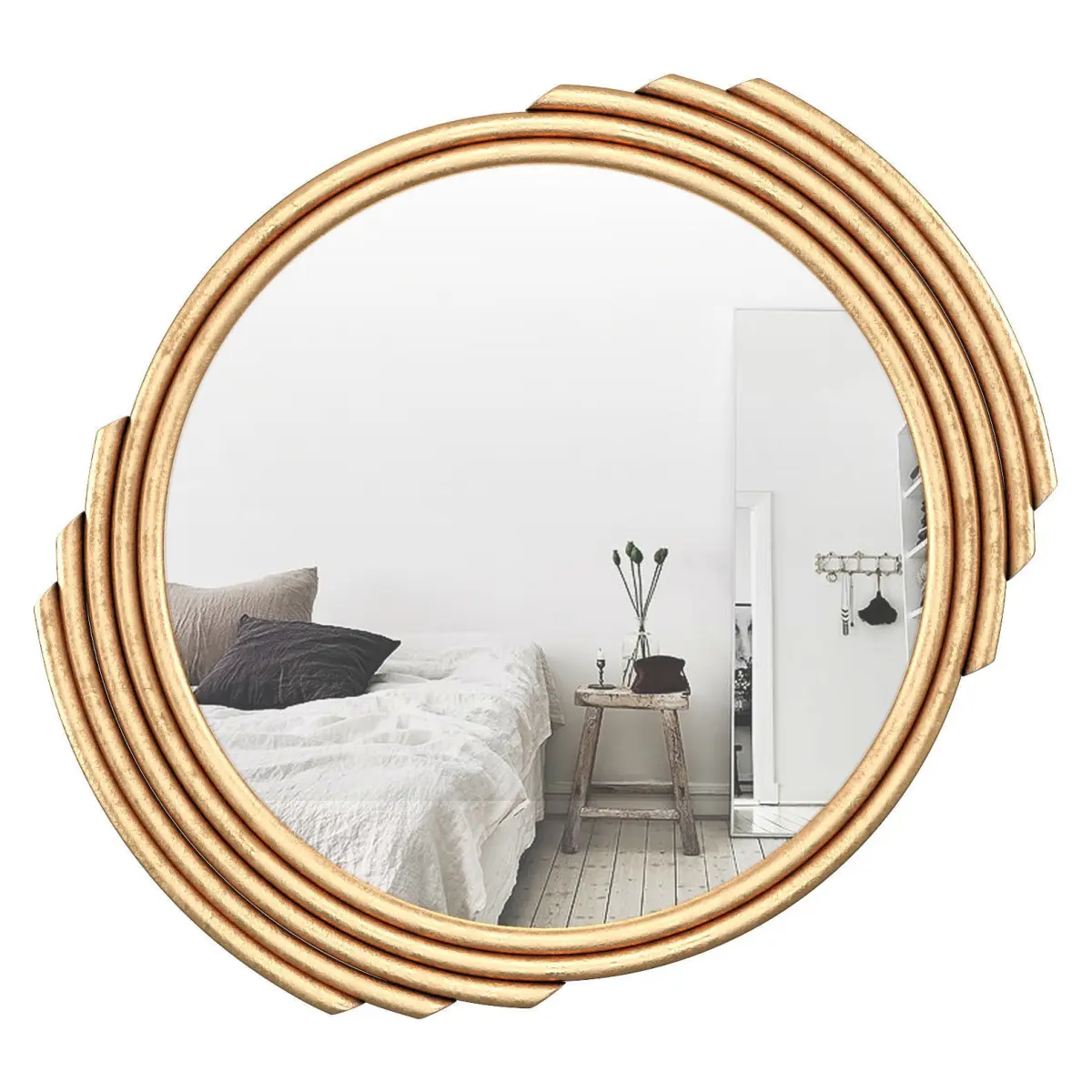 This round gold decorative mirror has a round shaped frame that is completely made of a shiny gold finish. The Cesario mirror can be used as a wall decor, which offers a modern yet sophisticated look to any interior wall space. Also available in stainless steel.