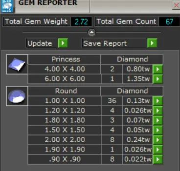 Diamond Size and Carat Weight: 67 brilliant and princess cut diamonds.