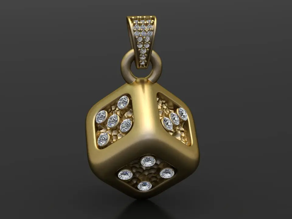 Home Catalog GOLD DICE DIAMOND PENDANT 3D print model