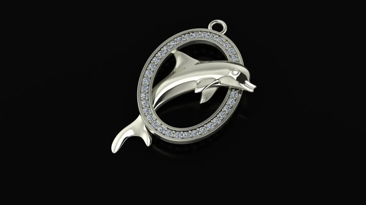 Gold dolphin necklace 3D model