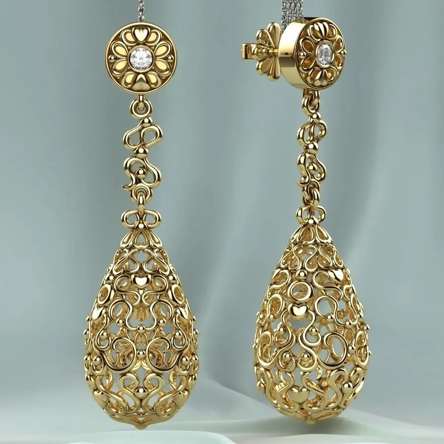 Expensive gorgeous earrings designed for 3d Printing.