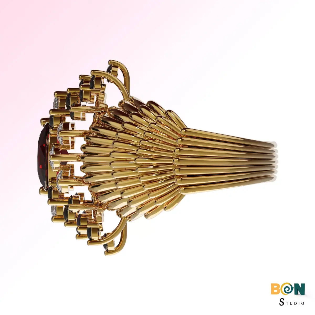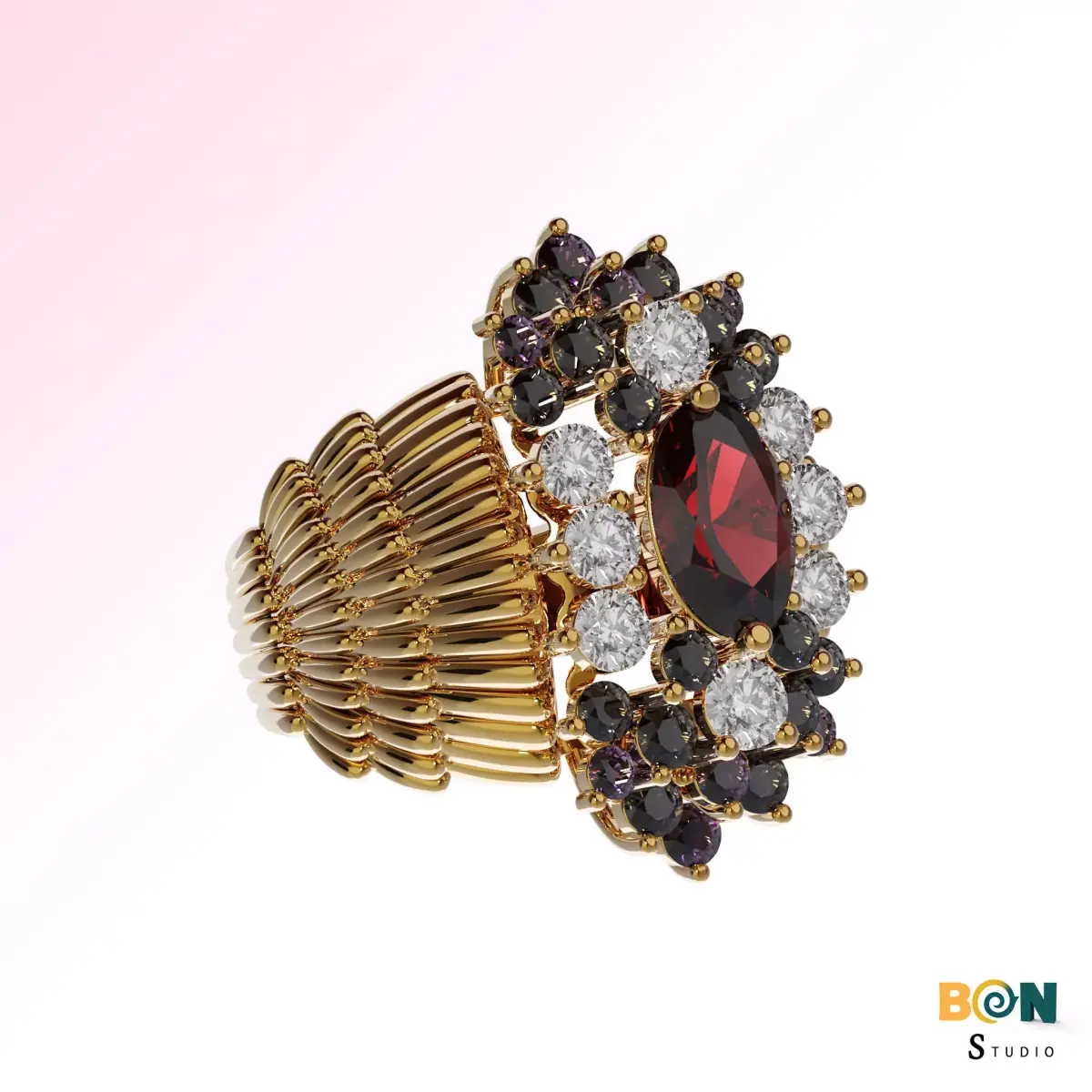 This premium 3D ring model by BONStudio is a fully detailed and elegant jewelry design, created with precision and optimized for both 3D printing and professional jewelry design workflows.