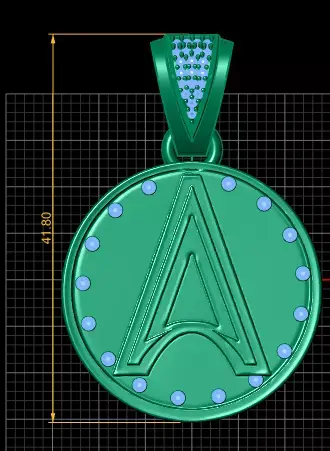 This luxurious gold round pendant showcases a bold engraved letter “A”, making it a perfect personalized jewelry piece. The outer circle is elegantly accented with sparkling gemstones, while the bail is encrusted with fine details, adding an extra touch of brilliance. Its sleek and modern design makes it a timeless accessory, suitable for both men and women who value elegance and individuality.