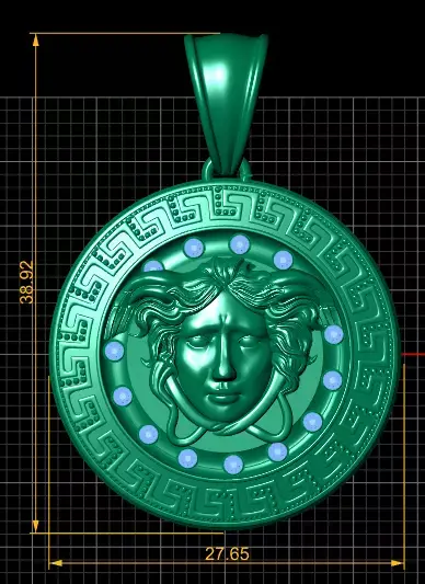 This elegant gold medallion pendant features a masterfully sculpted classical face at its center, framed by flowing hair that conveys grace and timeless beauty. The outer ring is adorned with a Greek key pattern, symbolizing eternity and unity, and highlighted with brilliant gemstones for added sophistication. A perfect fusion of heritage-inspired design and modern luxury, this pendant makes a powerful statement of style.