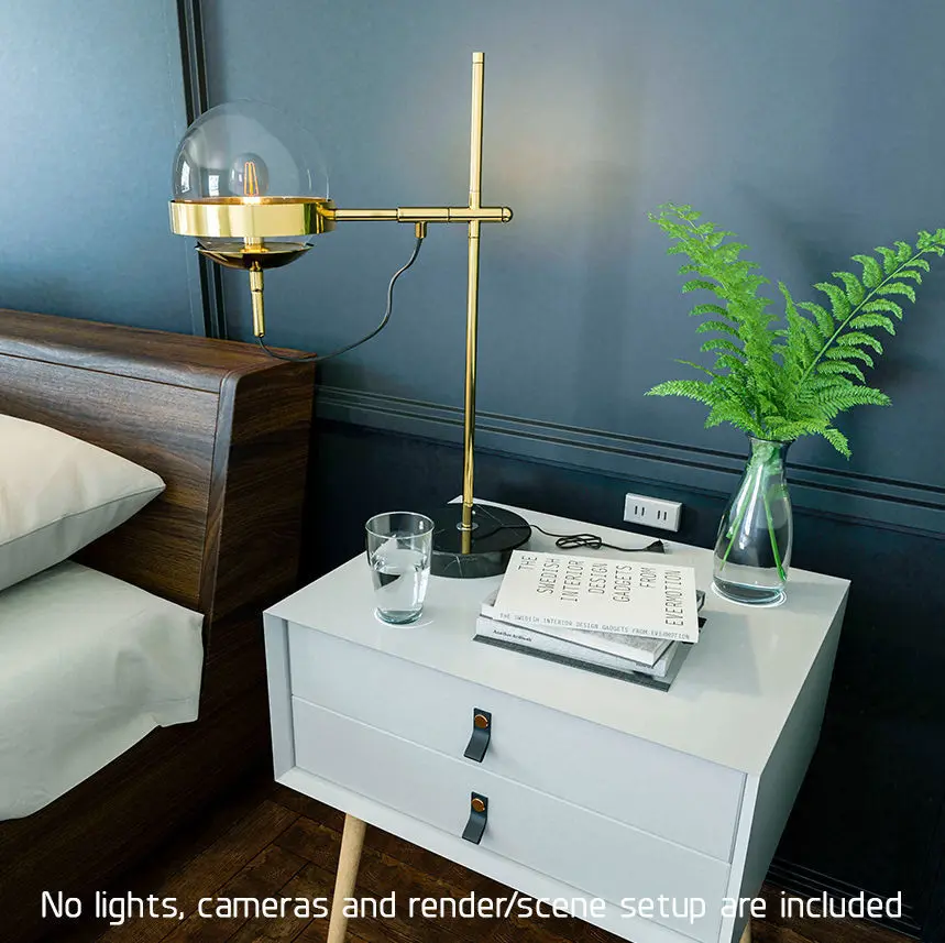 Modern lamp is a high quality, photo real 3d model that will enhance detail and realism to any of your rendering projects. The model has a fully textured, detailed design that allows for close-up renders, and was originally modeled in 3ds Max 2017 and rendered with V-Ray.