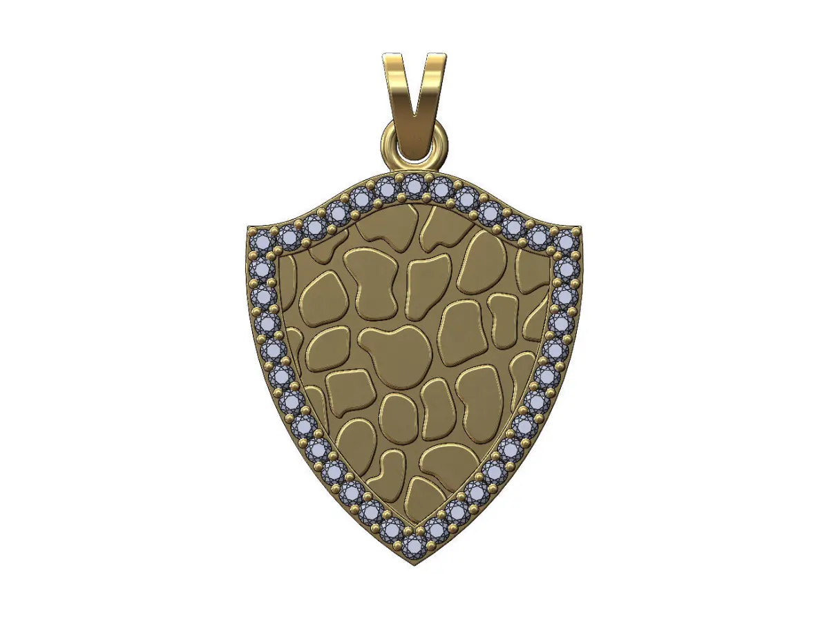 Gold nugget diamond shield pendant with bail