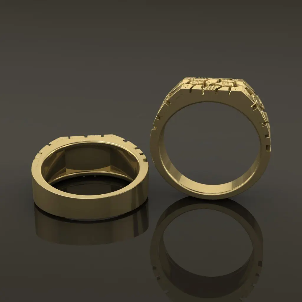 Gold Nugget Narrow Rectangular Signet Ring Mix Size