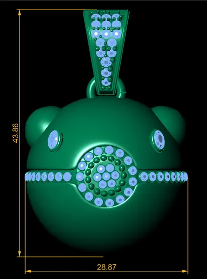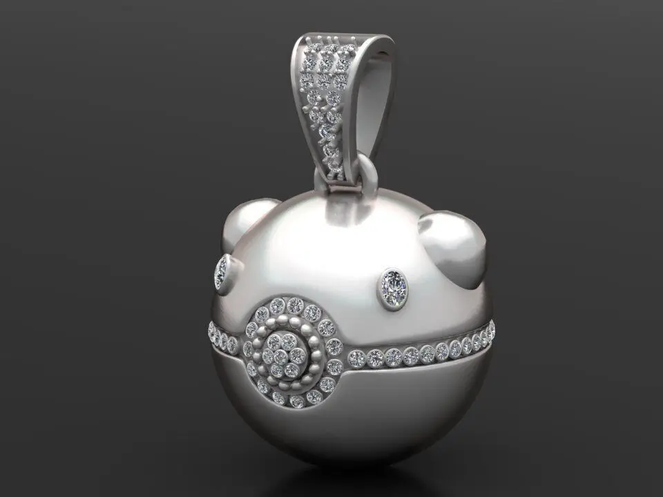 This luxurious 3D pendant model showcases a playful spherical design inspired by iconic fantasy elements. Crafted in rich polished gold, the model features a smooth orb-like shape enhanced by adorable ear accents, giving it a subtle character resemblance. The pendant is beautifully detailed with rows of brilliant-cut diamonds encircling the sphere and highlighting the center emblem, as well as the bail loop for a fully encrusted sparkling effect. Perfect for high-end jewelry collections, unique fashion accessories, or custom 3D printed designs, this piece combines charm with elegance in a modern luxury style