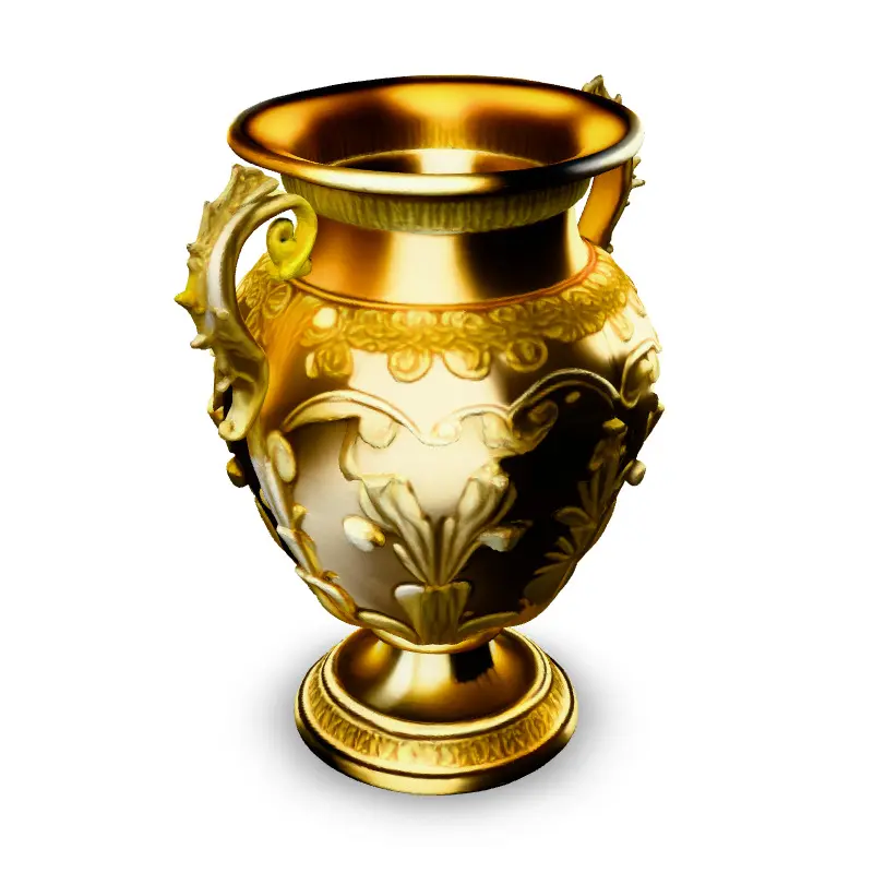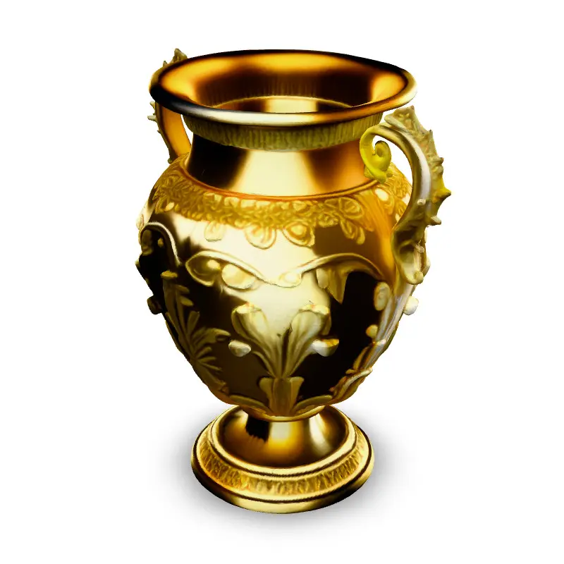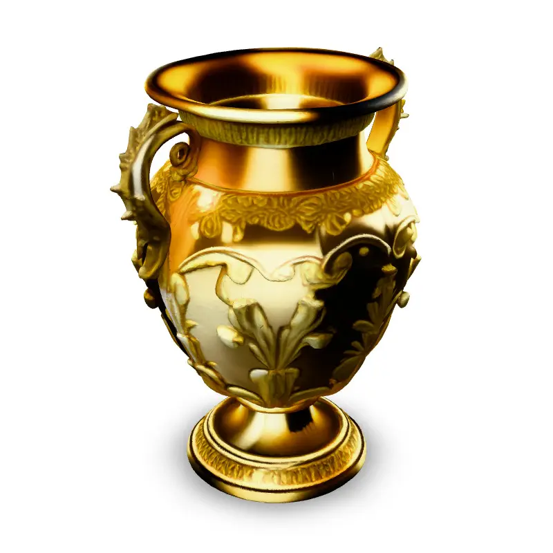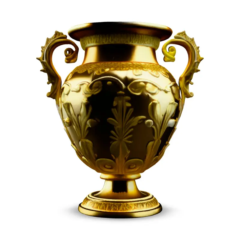 This highly detailed gold ornate antique vase 3D model features intricate floral engravings, symmetrical double handles, and a regal structure inspired by classical European design. Ideal for interior design scenes, museum or gallery simulations, historical animations, and luxury asset libraries, this asset adds richness and authenticity to your visual projects.