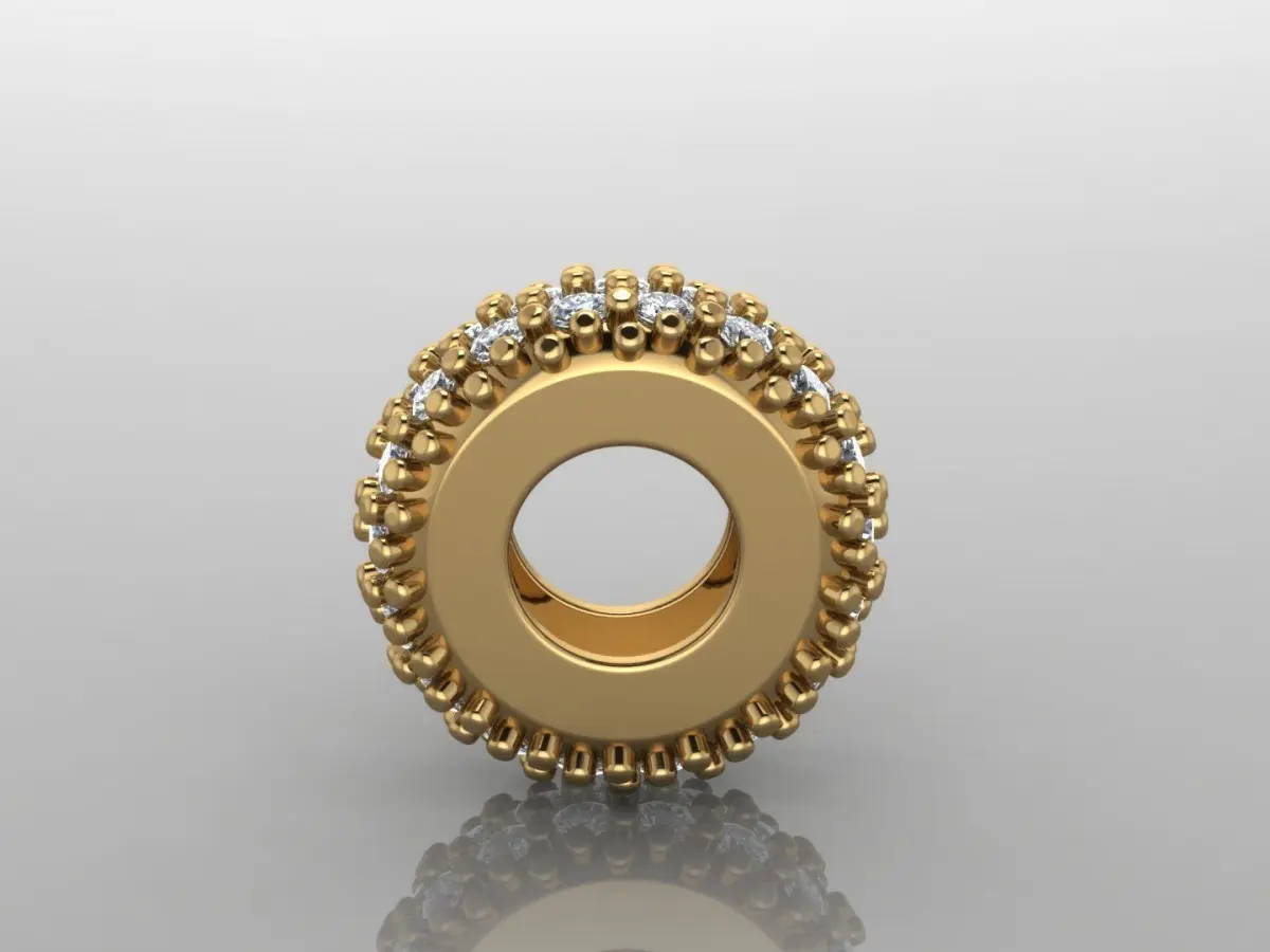 Gold Pave charm with diamondsDiameter 10.5 mm.Height 4.1 mm.Hole 4.4 mm.gem stones 1.3 mm. x 36 pcs.Jewelry pendants, tubes, charms on the bracelet. The internal size of the hole is 4.6mm. Pendants printed, everything was fine. perfect for professional 3d modelers to work. Also among the files there is a format stl, perfect for jewelers to immediately print and put into production.