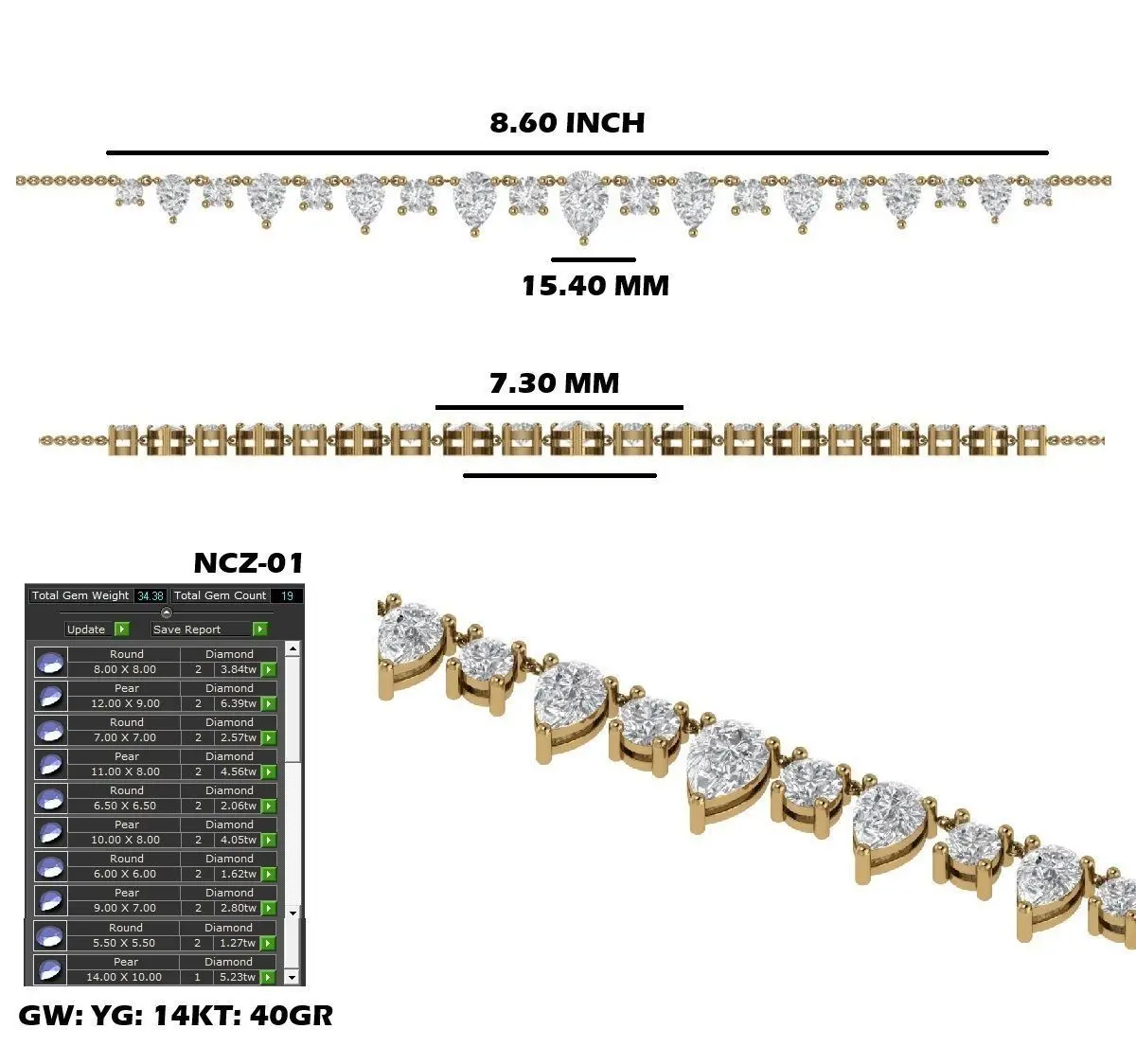 This exquisite Gold Pear and Round Diamond Necklace features a stunning combination of pear-shaped and round diamonds set in luxurious 14KT yellow gold. Perfect for high-end jewelry collections, this necklace design showcases elegance and sophistication. Ideal for 3D printing or rendering, the model is meticulously detailed to ensure a realistic and accurate representation.