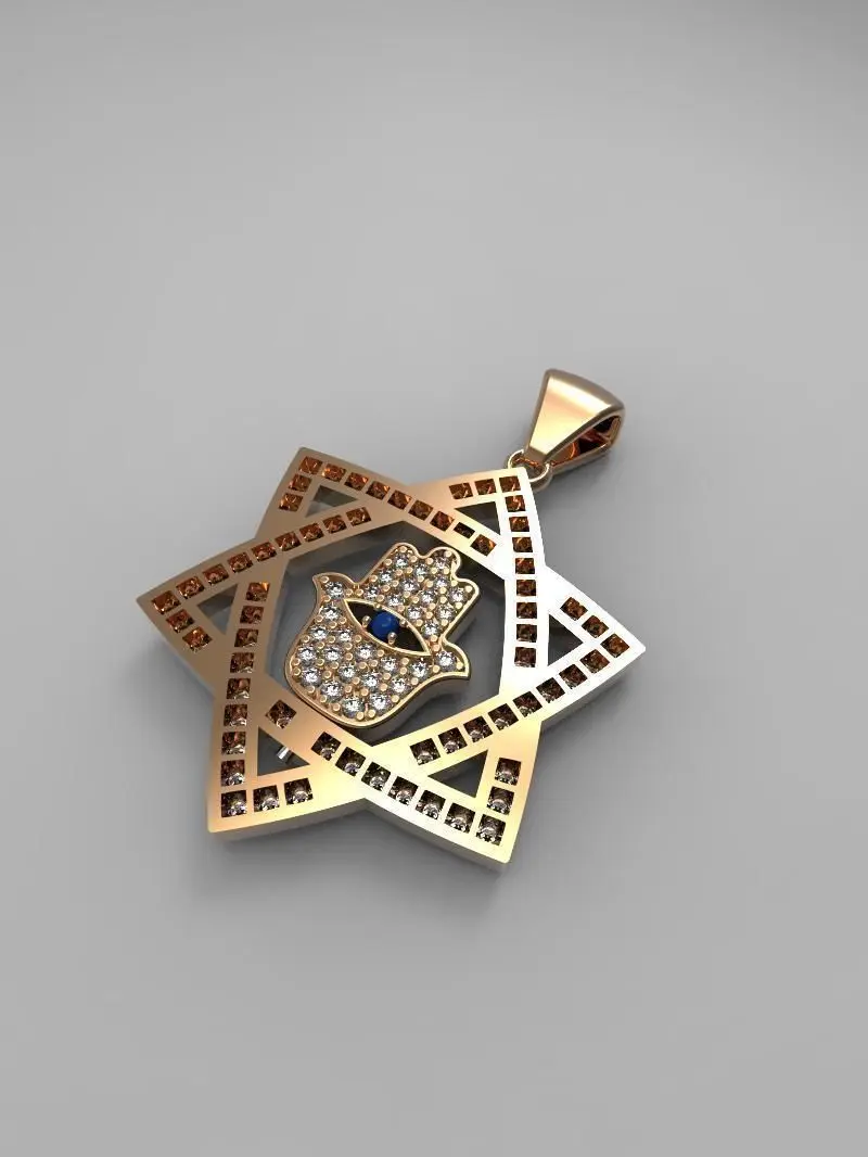 Gold pendant with a hamza hand inside a Star of David 3D model 3D print model