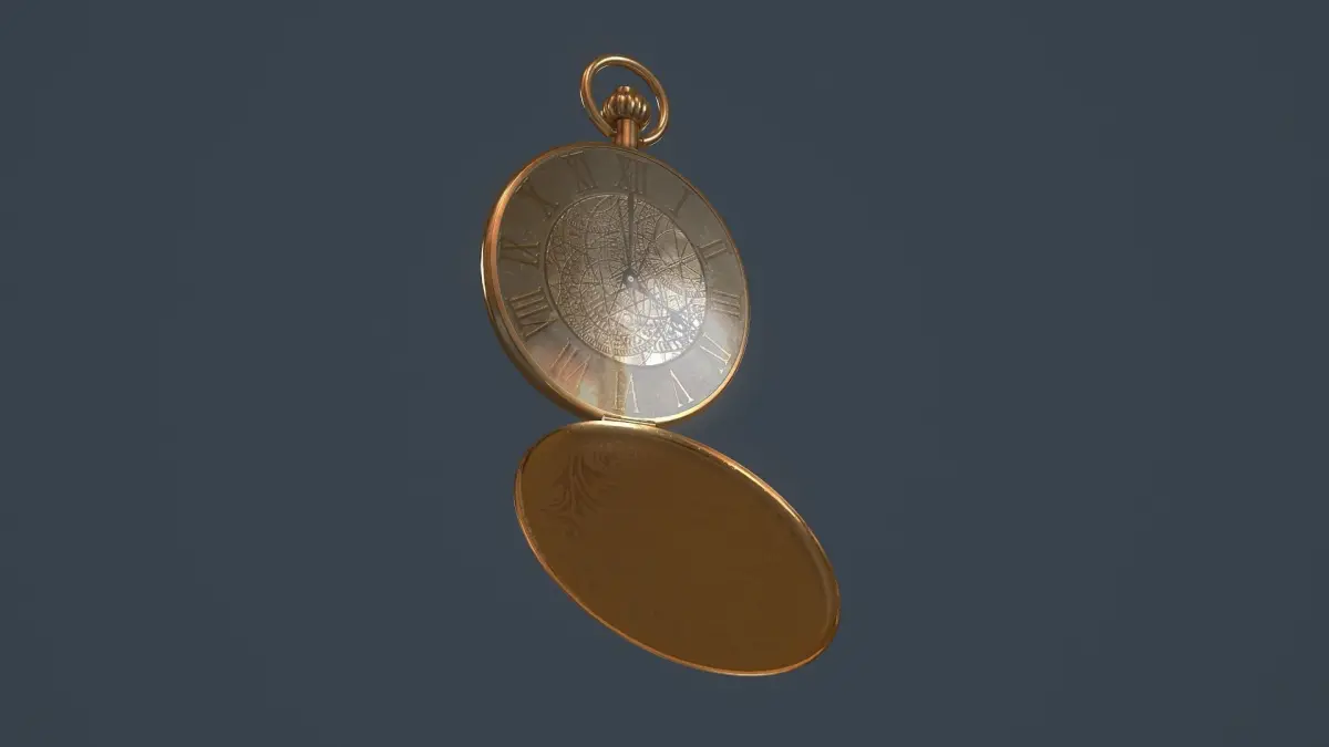 Pocket Watch - Approx 1.2cm tall, 7.3cm wide, 10cm deep (Based on orientation being back face down)
