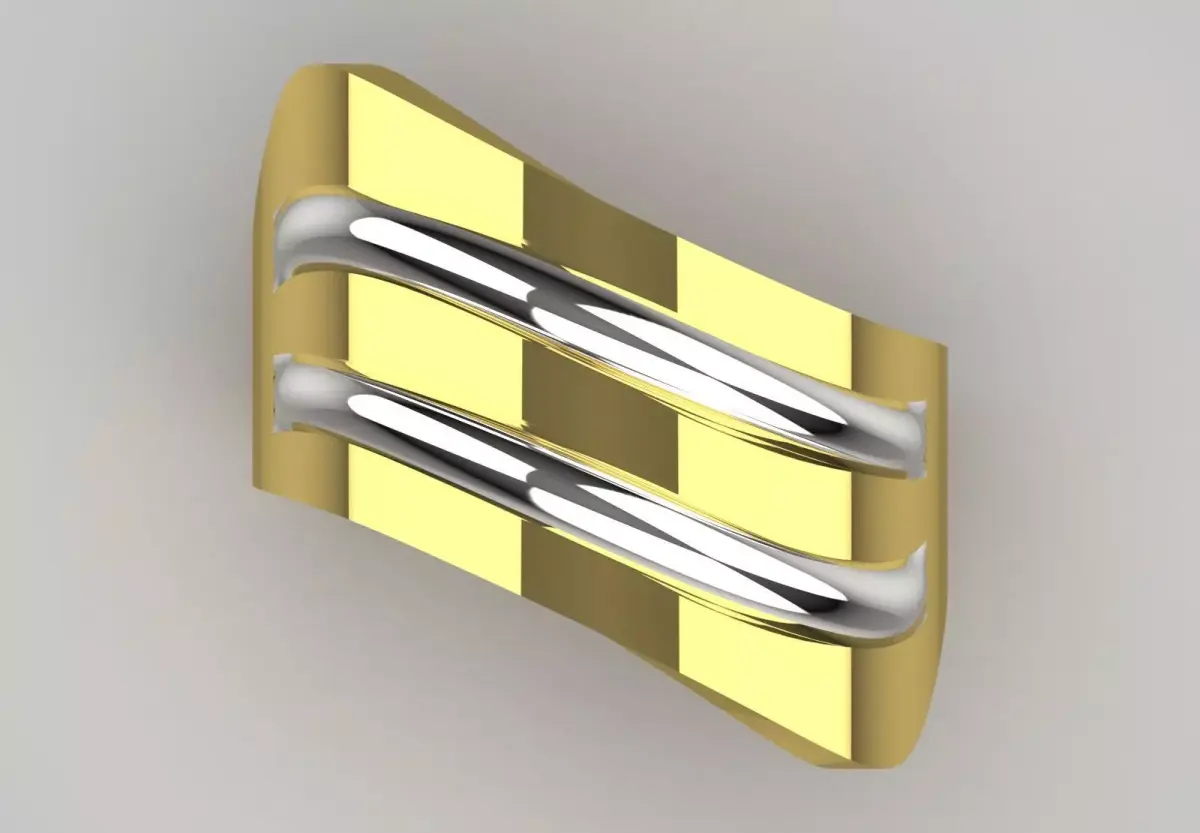 Two-tone multi-line design: The surface of the ring is made up of several parallel metal strips in yellow gold and silver colors, which creates a modern and dynamic effect.