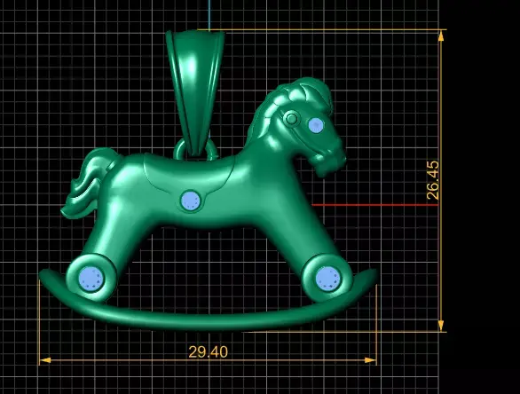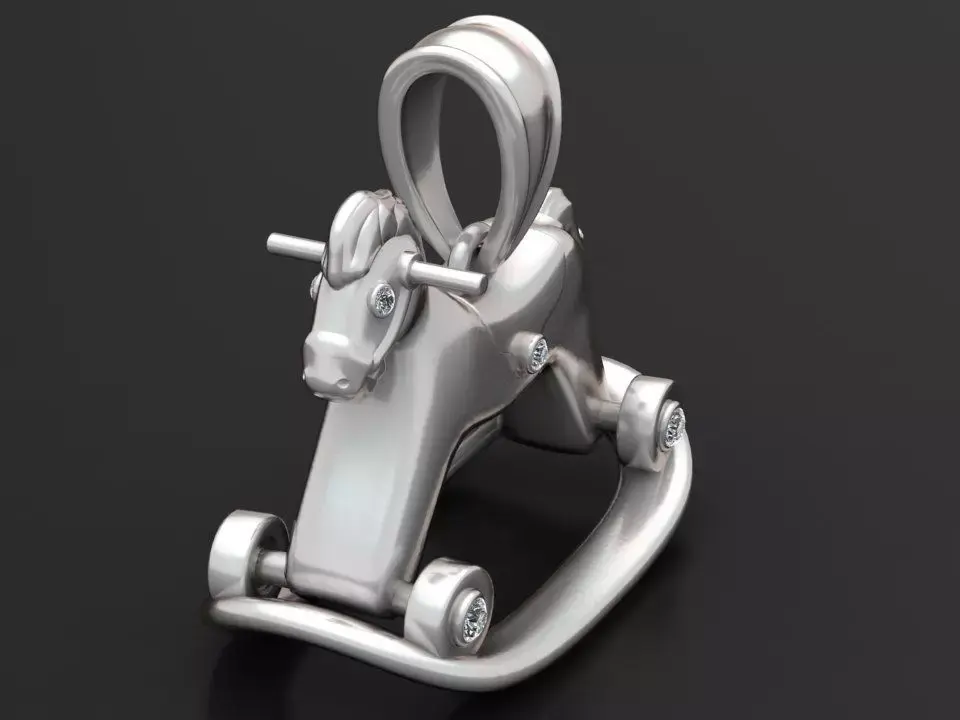 This charming pendant features a beautifully sculpted rocking horse, crafted in rich gold with a smooth matte finish. Accentuated with sparkling diamonds set in the wheels, body, and eyes, this design blends nostalgia with luxury. The curved rocker base and finely detailed mane add a playful yet elegant touch, making it an ideal gift for a loved one or a collectible charm.