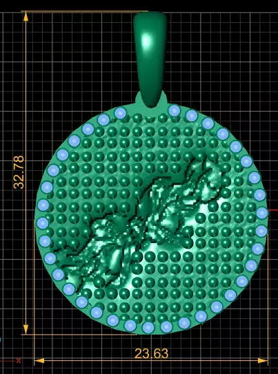 This luxurious round gold pendant is a masterpiece of texture and elegance. Its surface is adorned with a raised dotted pattern, creating a rich, tactile feel, while the center features an intricate, embossed floral vine motif that adds depth and artistic charm. The outer rim is meticulously set with sparkling round-cut gemstones, giving the pendant a brilliant halo effect. The combination of the detailed center design, shimmering gemstones, and polished gold makes this piece a statement of sophistication and timeless beauty.