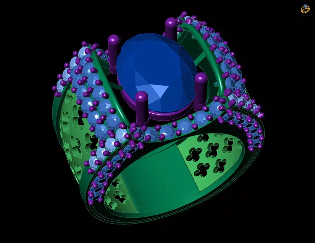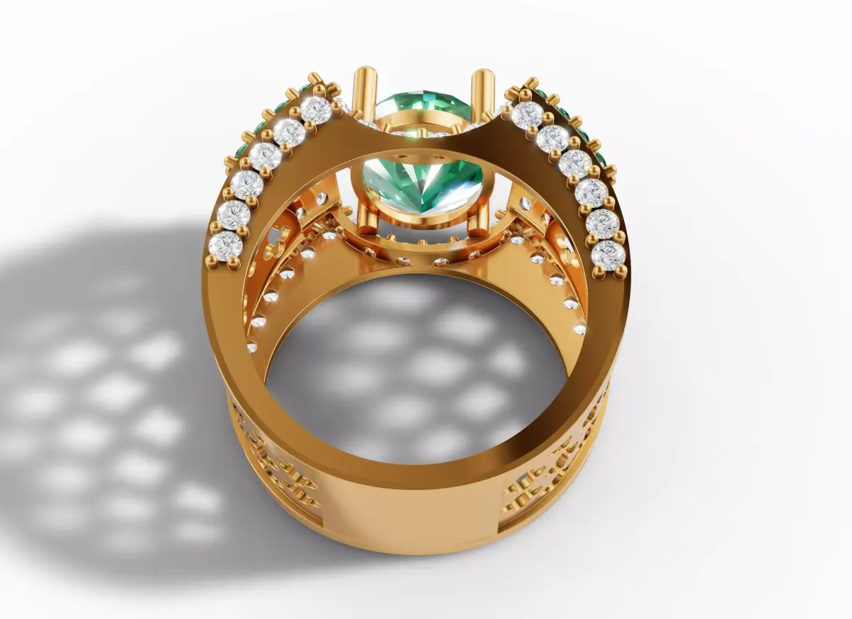 Product & Subject: This is a high-precision 3D CAD model for an opulent Royal Oval Gemstone Statement Ring, meticulously engineered for high-value gemstone setting and professional manufacturing.