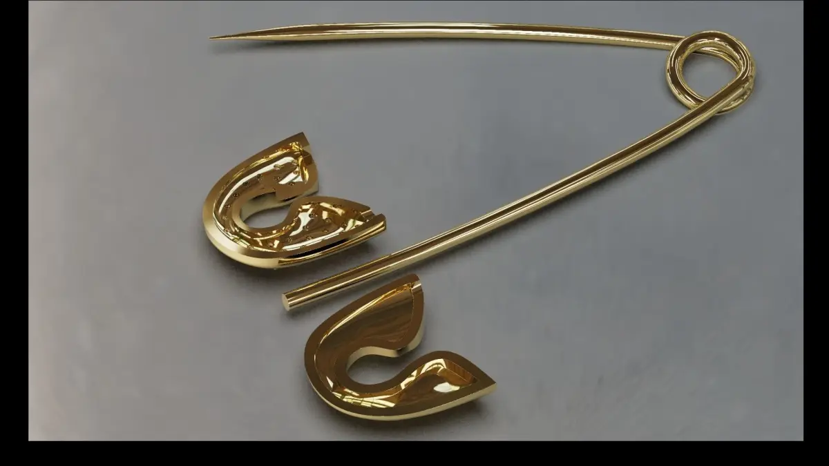 This is a beautiful 3D model of a Safety Pin. The gems are 1.00mm round, the weight is about 2.4 gr. 14 ct yellow gold. The overall dimensions - about 42.5 mm long. The model is ready for 3D printing or CNC milling.