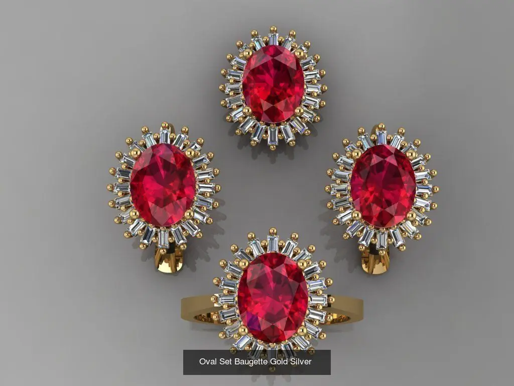 Buy Gold Silver Ring Earring Necklace Set 3D Model Pack