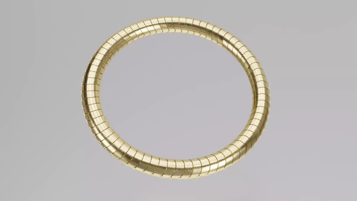 This is a high-quality 3D model of a gold coil bracelet. It features a smooth, detailed design with realistic metallic shading. The model is clean, easy to use, and perfect for jewelry renders, product showcases, animations, or fashion projects. Ready for use in Blender, Cycles, Eevee, and other 3D software.