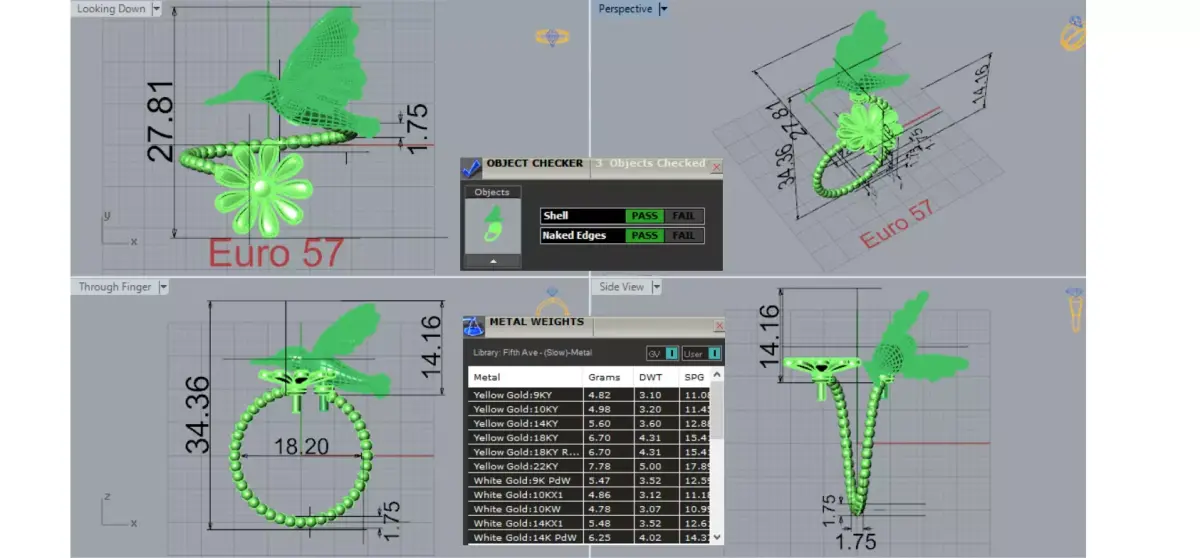 - Hummingbird in Motion: The upper part of the ring depicts a Hummingbird sculpture in flight. The bird is made of polished silver and the delicate details of its wings and beak are clearly visible.