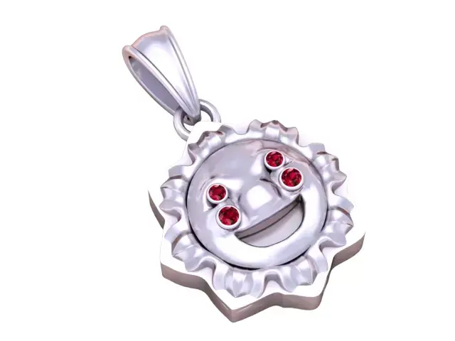 This delightful gold pendant features a smiling sun motif with diamond accents for the eyes, radiating positivity and joy. The sun's rays are intricately designed, adding a touch of charm and elegance. Its playful and whimsical design makes it perfect for those seeking a fun yet luxurious accessory. Whether worn as a symbol of warmth or simply as a unique piece, this pendant brings light and cheer to any outfit.