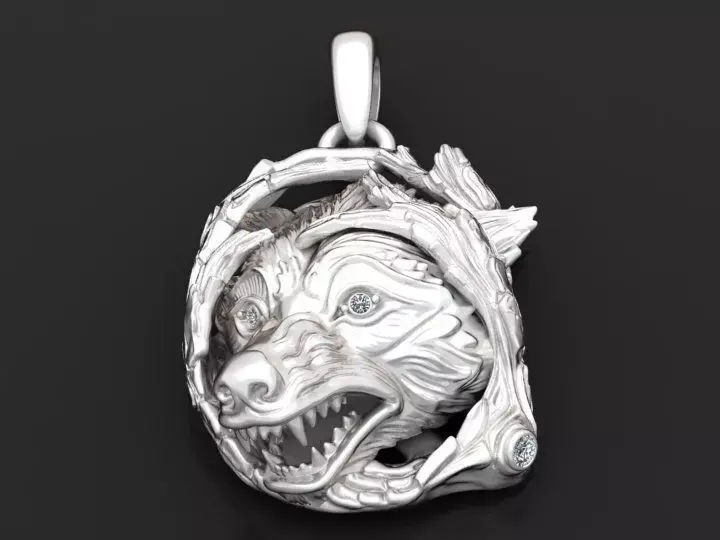 This fierce gold pendant features a meticulously sculpted wolf head, symbolizing loyalty, courage, and untamed strength. Encircled by an intricately detailed wreath-like frame, the design includes sparkling gemstones set in the wolf’s eyes and the surrounding frame, adding a touch of elegance to its wild and powerful presence.