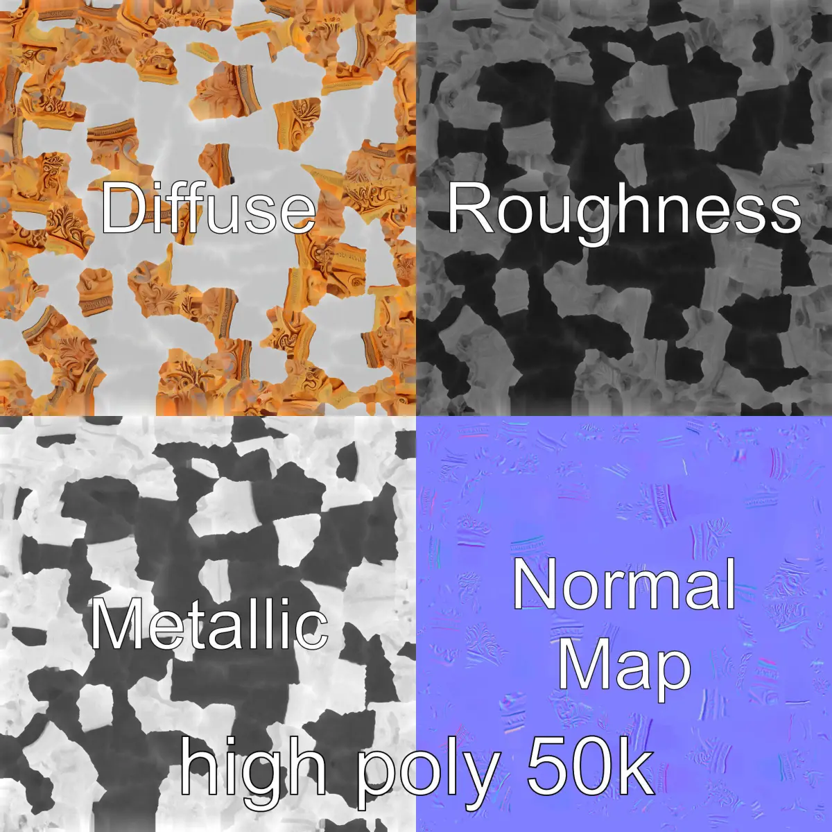 The model's textures are PBR, Diffuse, NormalMap, and reflection/roughness/metallic, which are suitable for any modern rendering engine. All models are accurately unwrapped and have no overlapping UV. All textures are 4096*4096 in size.