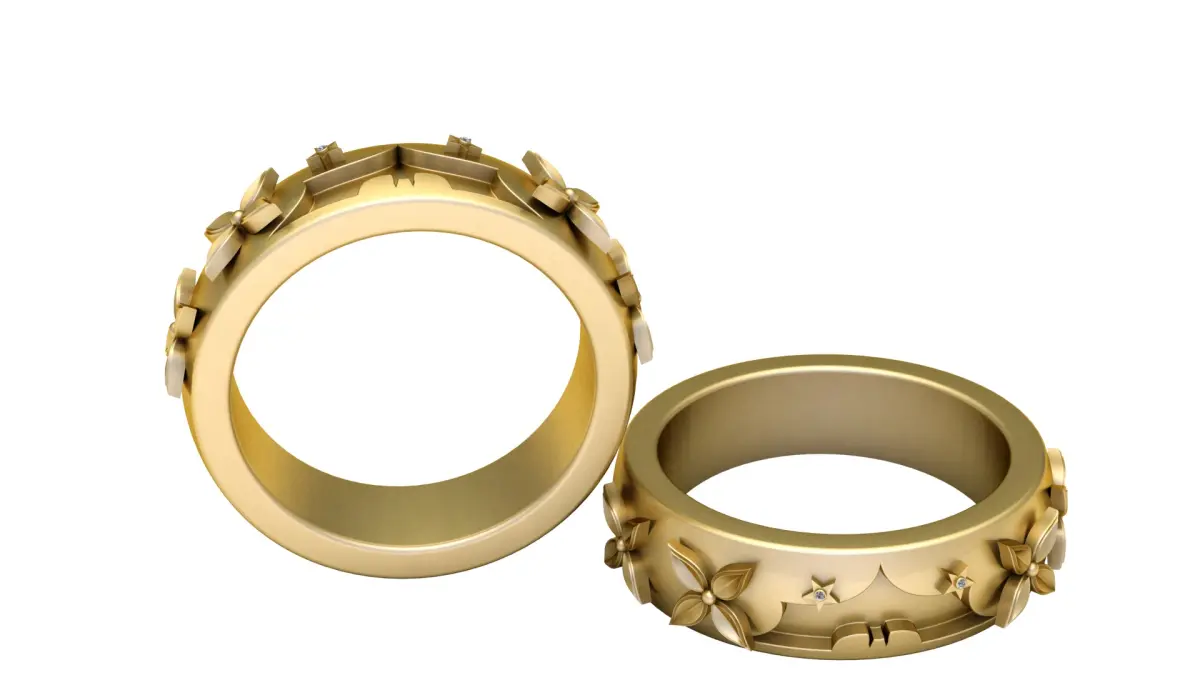 GOLDEN AND TEXTURED FLOWER RING 3D PRINTABLE MODEL 3D print model