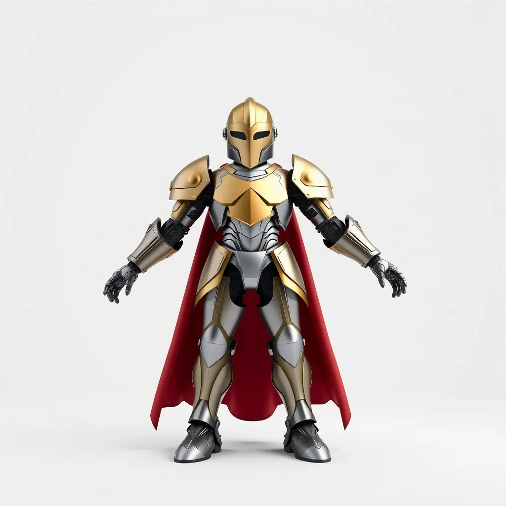 Golden Armored Knight with Red Cape D Model Low-poly 3D model