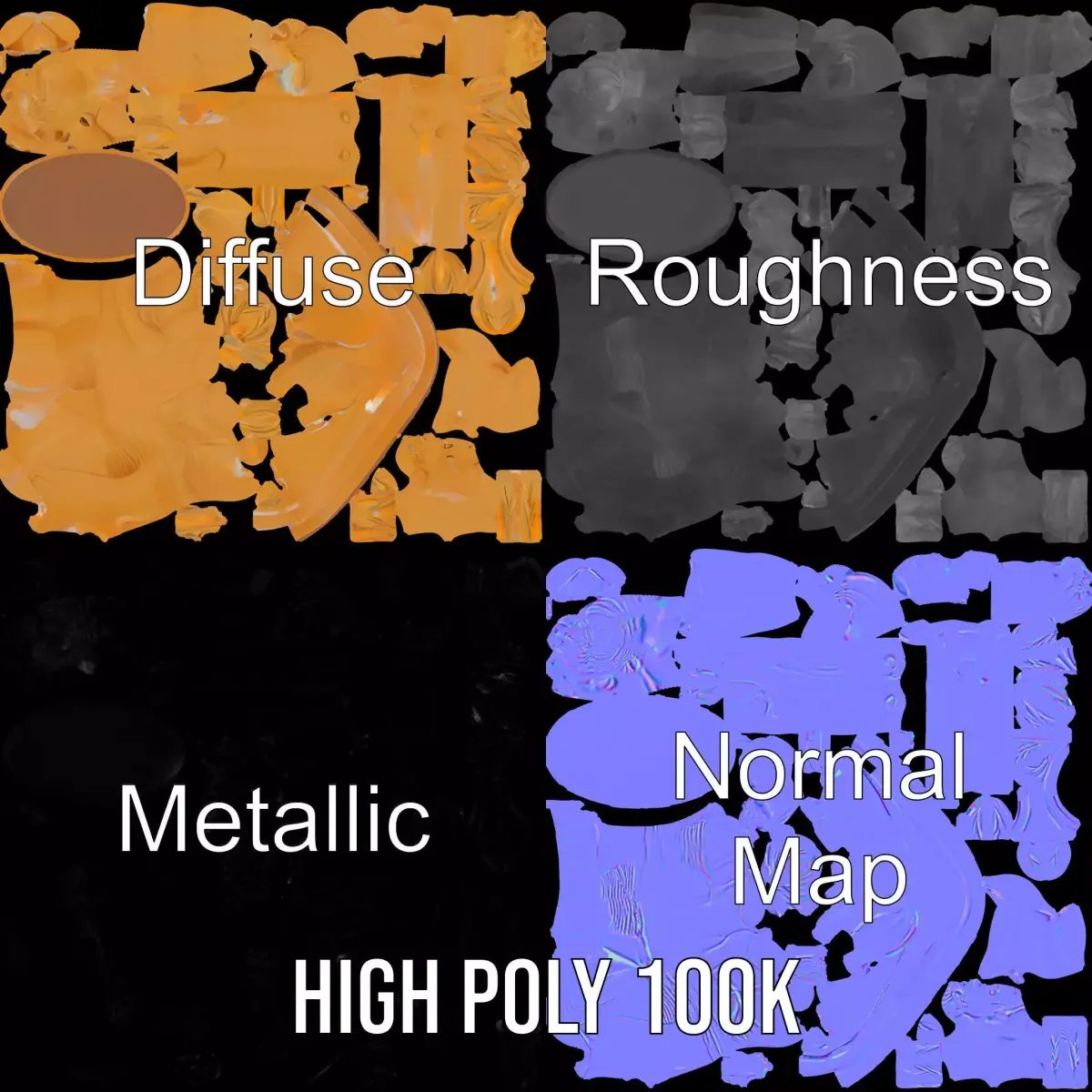 This Golden Athlete Statue with Laurel model pack features an elegant and dynamic figure symbolizing victory and achievement. Its versatile design allows for use in various scenes, from sports promotions to award ceremonies or as a decorative element in games and simulations. Each model has 3 levels of detail: low-poly (1000 triangles for mobile), middle-poly (10,000 triangles for environment), and high-poly (100,000 triangles), making it suitable for production rendering (such as 3ds Max, Maya, Cinema4D, Blender, Vray/Corona/Cycles), game engines (Unity and Unreal compatible), and interactive presentations, offering a choice based on the LOD System principle. The model's textures include PBR, Diffuse, NormalMap, and reflection/roughness/metallic, suitable for any modern rendering engine. All models are accurately unwrapped with no overlapping UVs. The textures are 4096x4096 in size. The first image is the reference used for creating the 3D model. It is important to carefully evaluate the quality of the model by examining the preview images that display the topology and polygonal mesh. These previews (WIRE and WEB 3D Preview) clearly demonstrate how accurately the model matches the original reference and how well the geometry has been executed. Please like and leave a comment if you enjoyed the model.