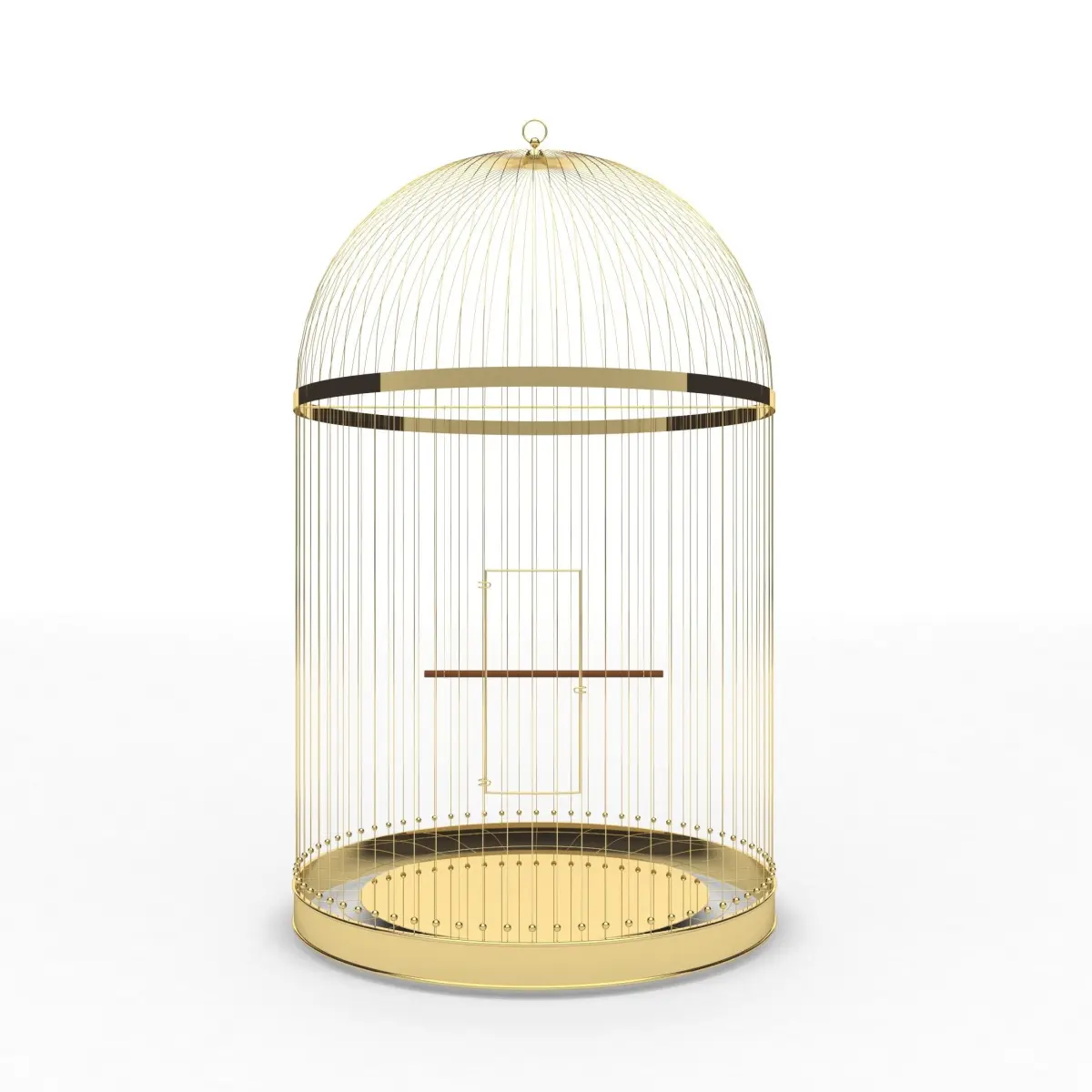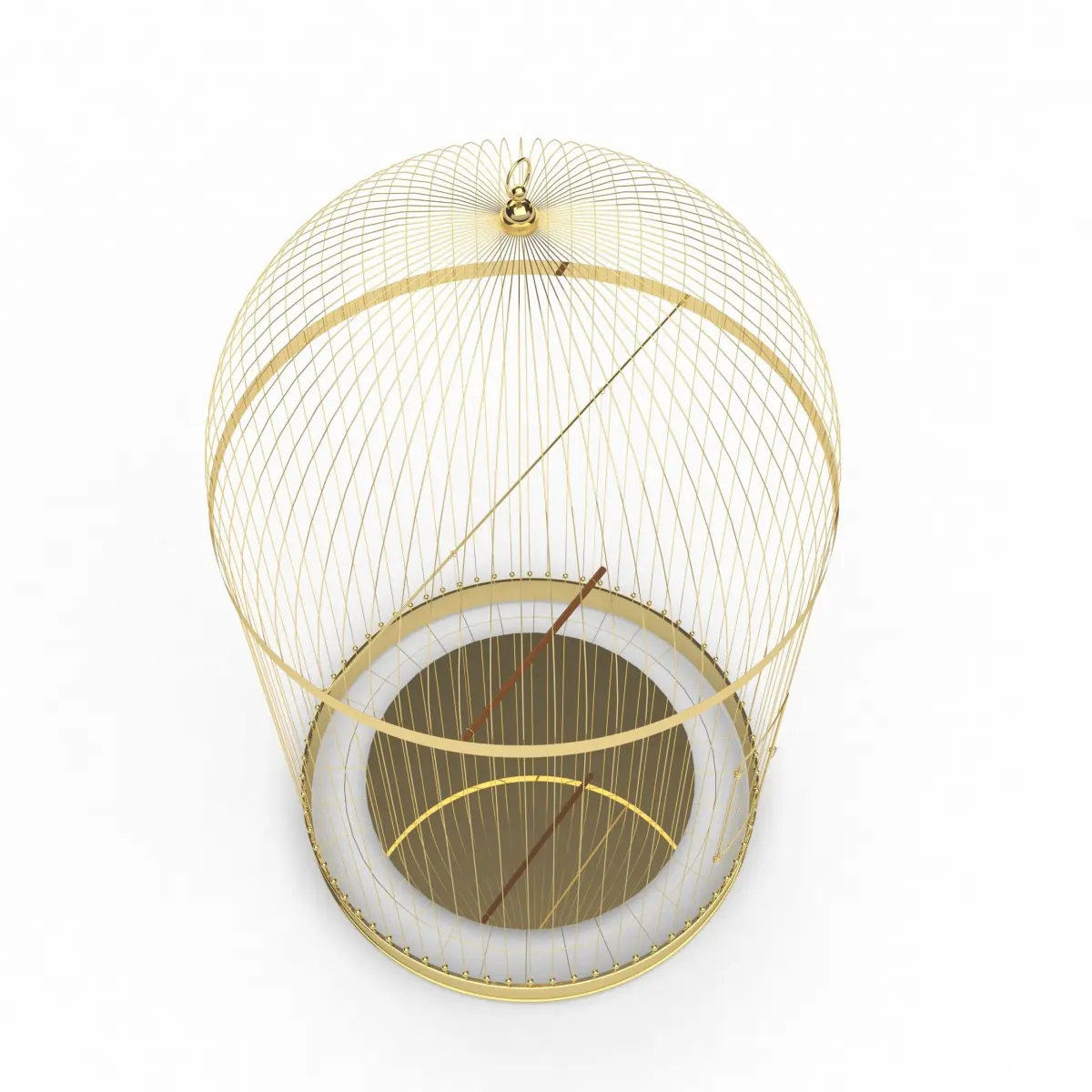 Yellow gold plating. Matte finish on the lower rim. Inside the cage is a wooden pole on gilded cables. Openwork grid on the perimeter of the bottom ring. Diameter: 607 mm (23,9'')Height: 1000 mm (39,4'')