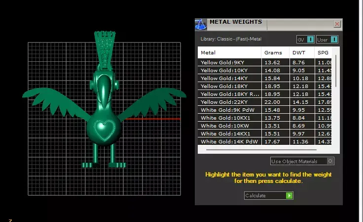 Golden Bird Pendant with Diamond Heart 3D print model
