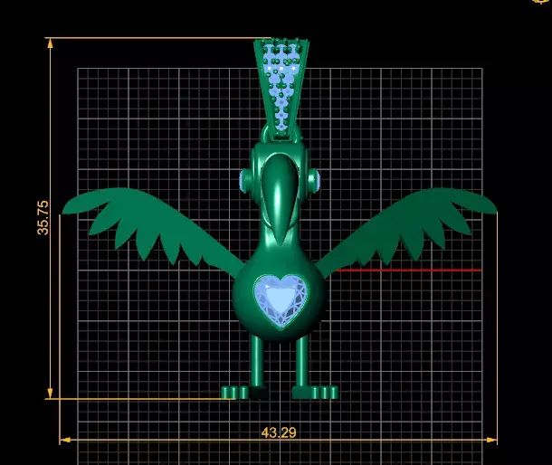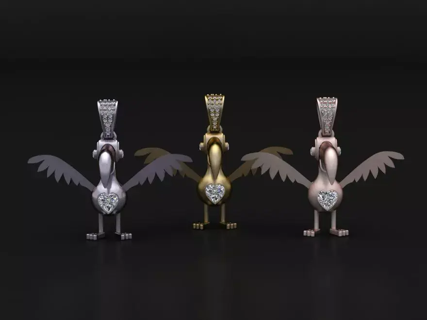 An elegant bird-inspired pendant with outstretched wings, a bold beak design, and a sparkling diamond heart centerpiece. Perfect for 3D printing in precious metals, this pendant blends playful creativity with luxurious craftsmanship.