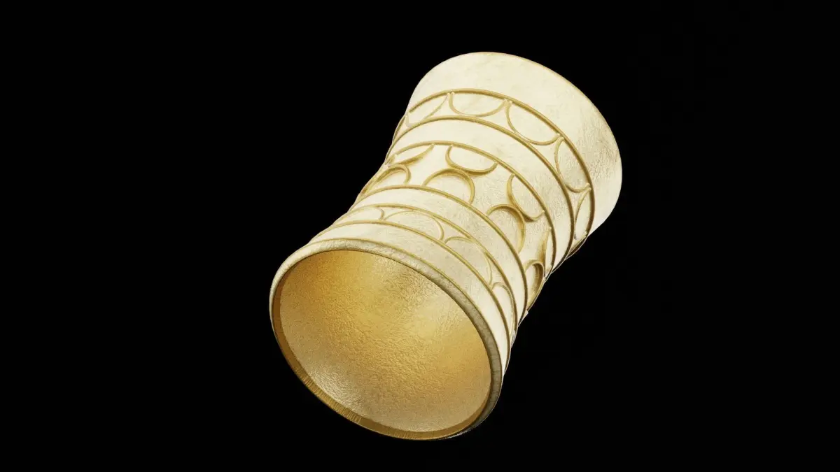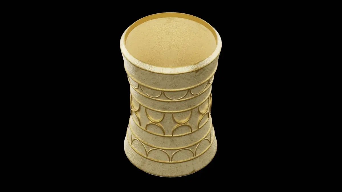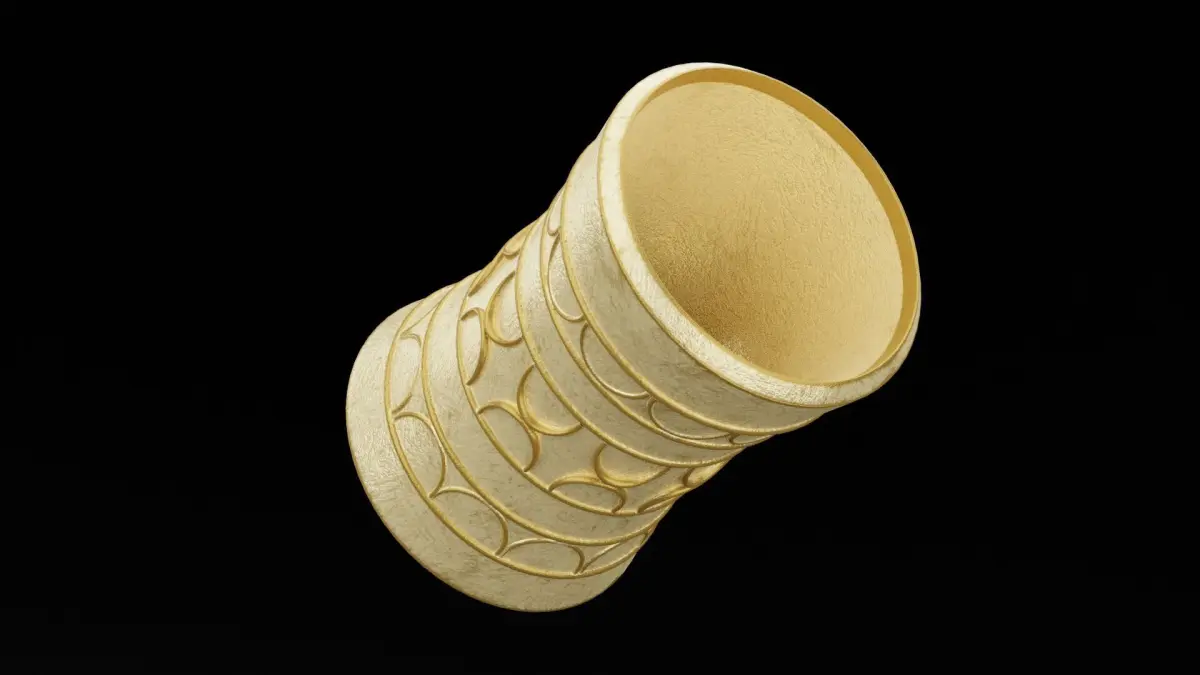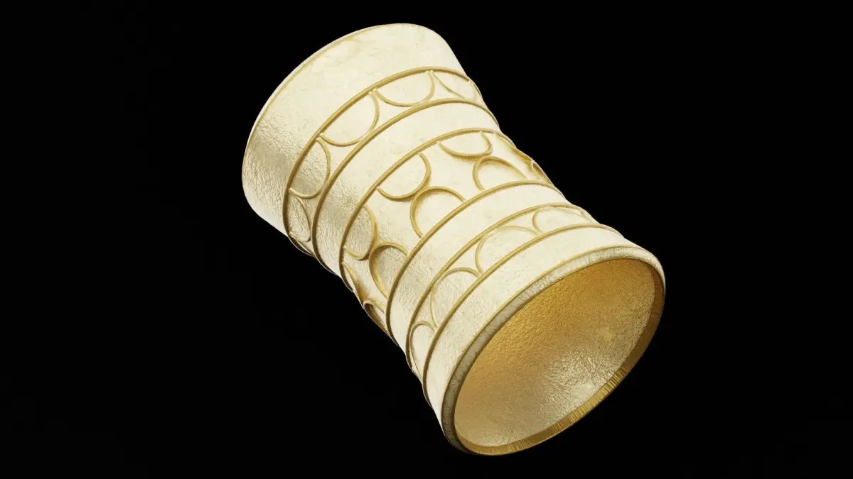 This 3D model depicts a golden bracer, an ornate arm guard designed with intricate engravings and a polished metallic finish. The bracer features elegant curves and embellishments, making it ideal for use in fantasy, medieval, or historical settings. Its high level of detail ensures realism, whether used as a wearable accessory in character models or as a decorative artifact. Provided in Blend, OBJ, DUF, and FBX formats, this model is versatile and easy to incorporate into any 3D scene.