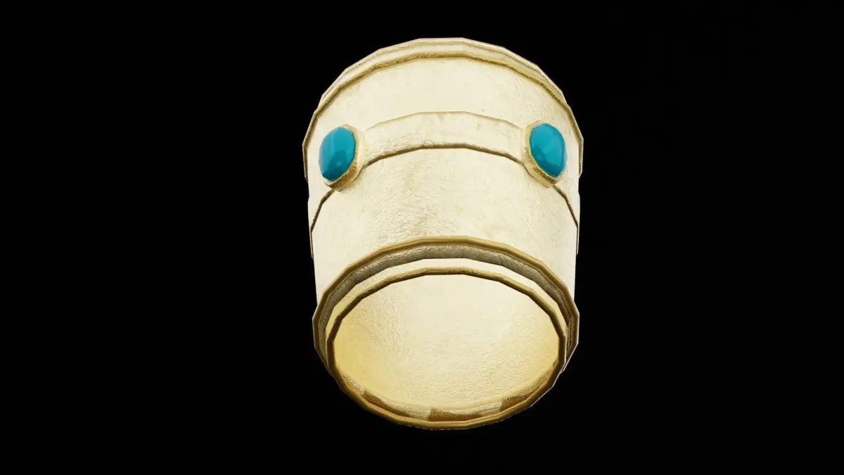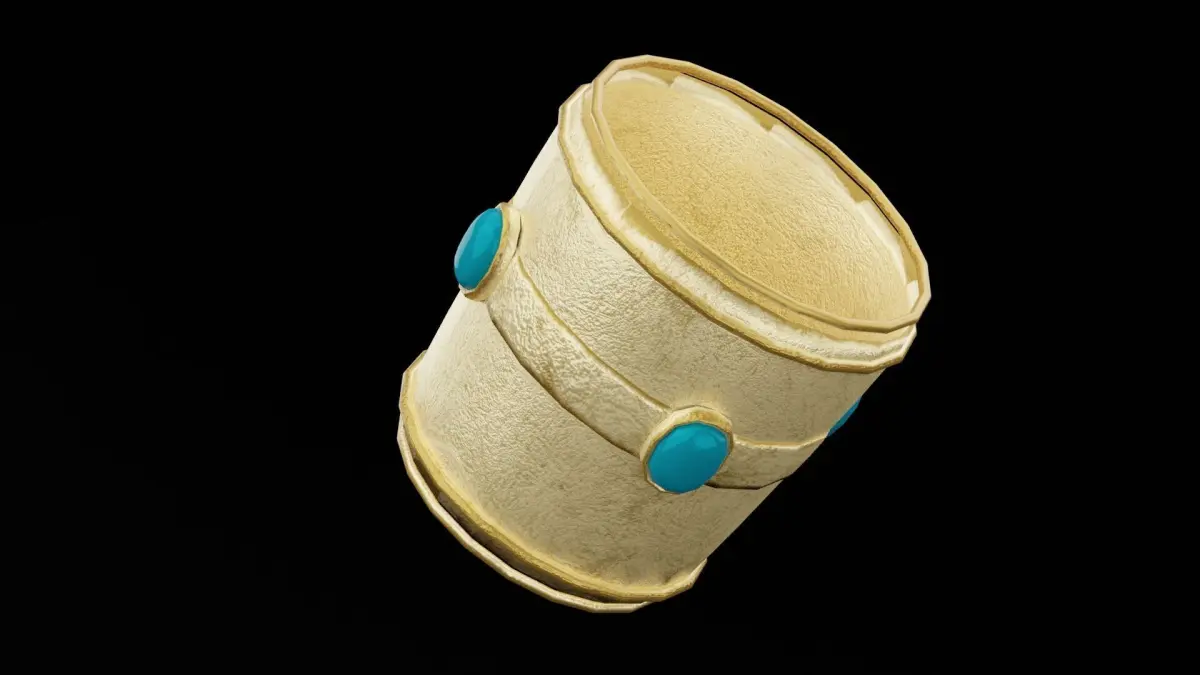 This 3D model presents a stunning golden bracer, crafted with intricate engravings and a polished metallic sheen. The design includes fine ornamental details and a slightly curved shape to fit comfortably on the forearm, perfect for use in fantasy, historical, or medieval-themed settings. Whether for a warrior, mage, or royal character, this bracer enhances any costume or treasure trove. The model is available in BLEND, OBJ, DUF, and FBX formats, ensuring compatibility with various creative projects.