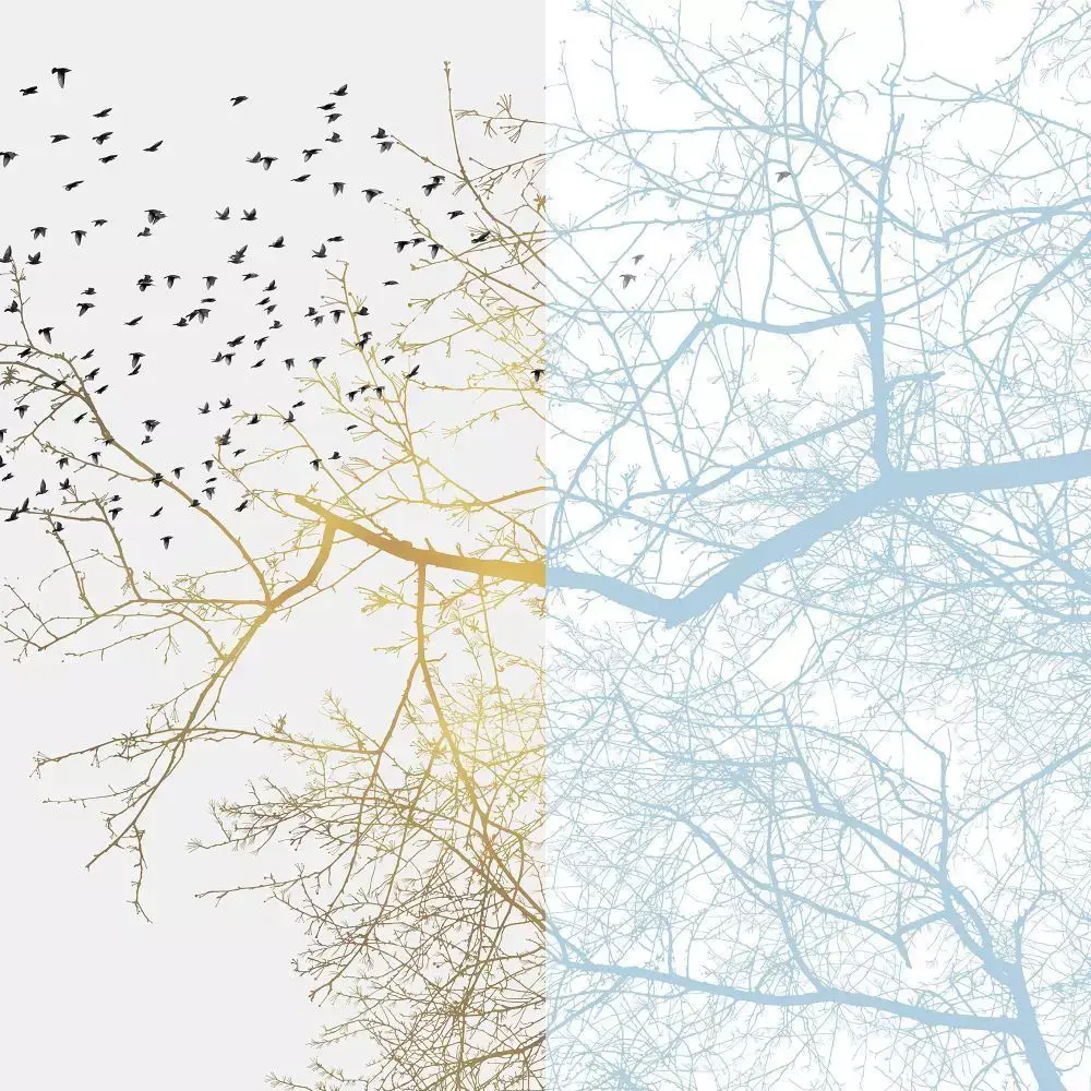 Key featuresAiry negative space with fine twig detail and dynamic bird silhouettes creates a tranquil, uplifting focal wall without visual clutter.