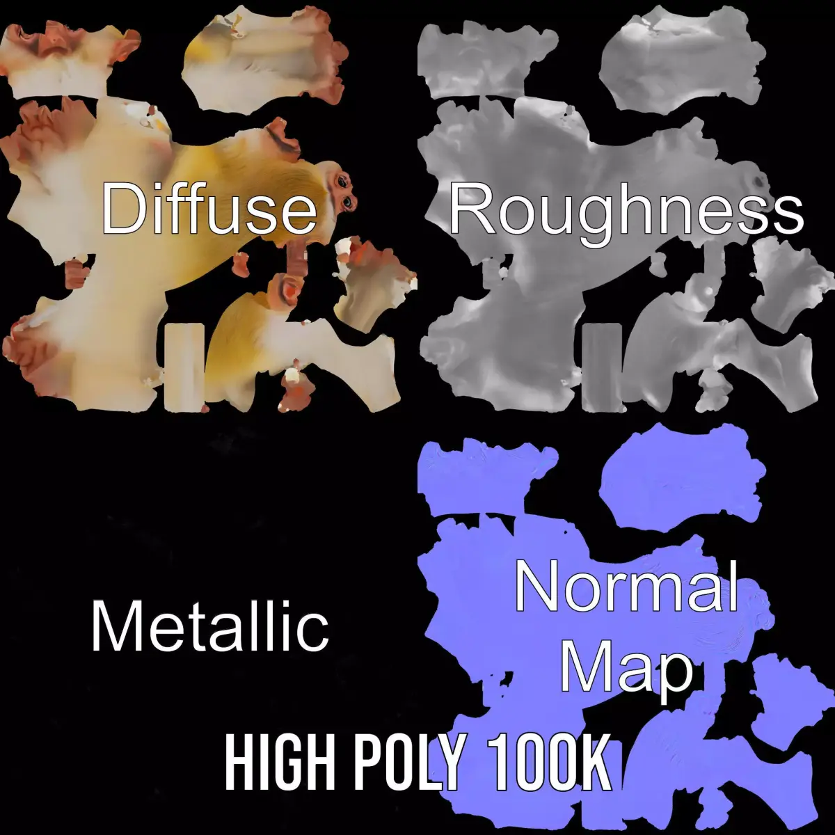 This 3D model pack features a highly detailed golden capuchin monkey, perfect for wildlife scenes, educational content, or animation projects. Each model includes three levels of detail: low-poly (1000 triangles for mobile), middle-poly (10,000 triangles for environment), and high-poly (100,000 triangles), ensuring compatibility with production rendering tools like 3ds Max, Maya, Cinema4D, Blender, and game engines such as Unity and Unreal. The models utilize PBR textures, including Diffuse, NormalMap, and reflection/roughness/metallic, all in 4096x4096 size for maximum quality. Designed with accurate UV mapping and no overlapping, this model is optimized for modern rendering engines. Perfect for interactive presentations or immersive games, this model enhances realism and engagement. If you enjoyed this model, please like and leave a comment.