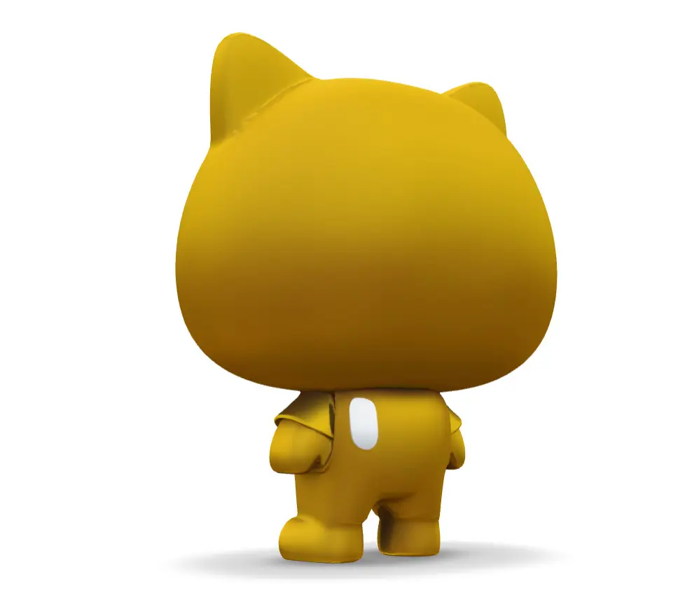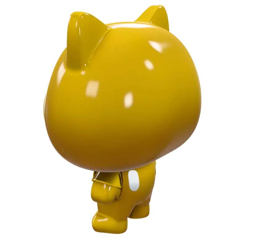 Exclusive 3D Model: Glossy Golden Cat Character in Cartoon StyleWe present an exclusive 3D model of an adorable golden cat in a cartoon style, designed to elevate your creative projects. This digital asset, with its glossy and smooth surface, offers a shiny and reflective appearance that dynamically captures light, adding a touch of luxury and charm to your renderings and animations.