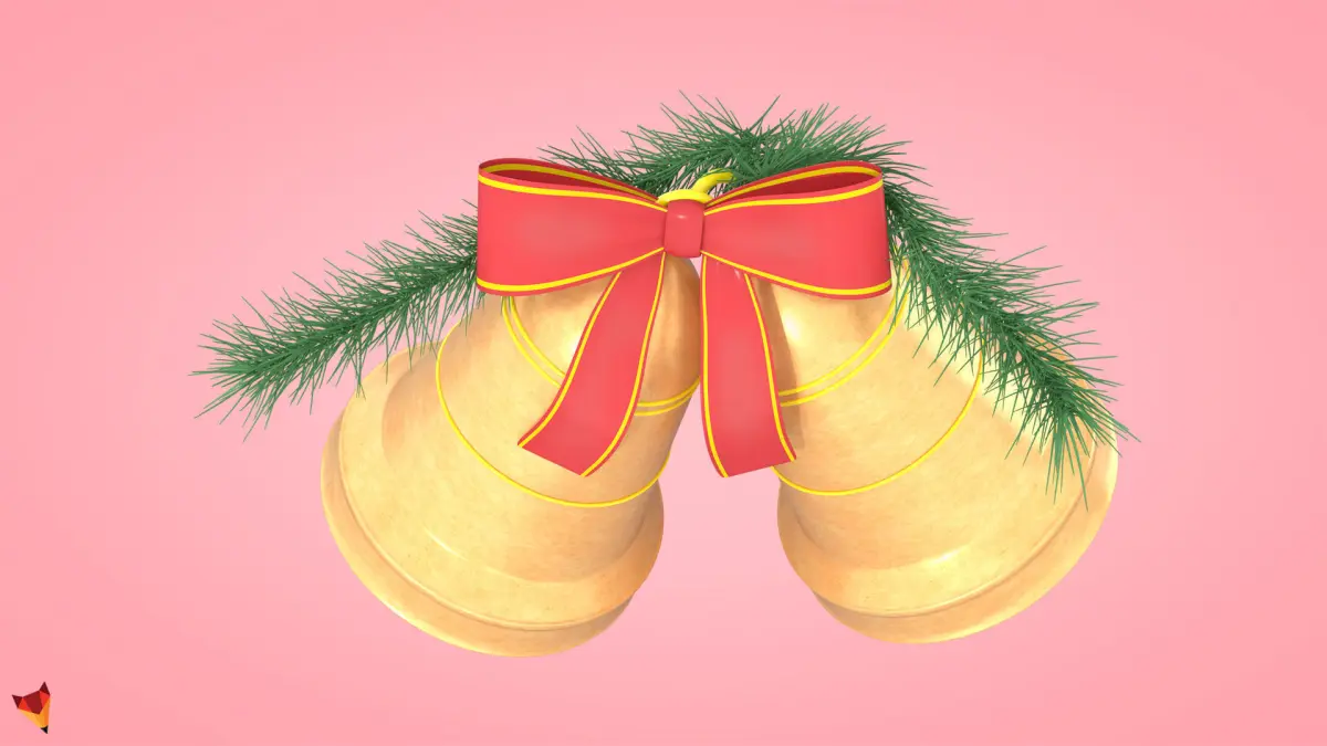 - 3D Models: Golden Christmas Bells + Red Bow