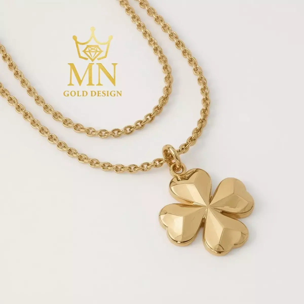 Bring elegance and good fortune together with this Golden Clover Necklace.A sophisticated 3D jewelry design featuring a polished four-leaf clover pendant – a universal symbol of luck, love, and prosperity – crafted entirely in radiant yellow gold.