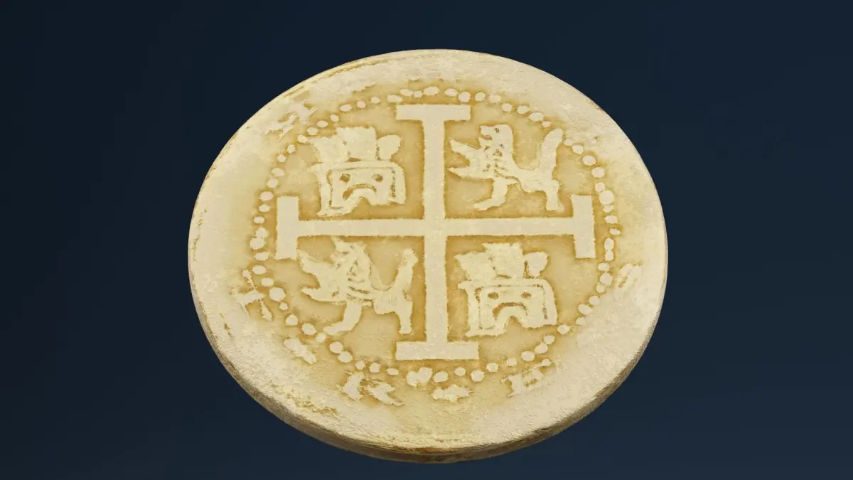 Golden Coin 3D ModelA finely detailed Golden Coin featuring a circular, slightly worn shape with embossed designs on both sides. One side showcases an intricate emblem or crest, while the other depicts ornate patterns or symbols indicative of wealth and antiquity. Rendered in 4K textures, the coin exhibits a polished yet weathered gold surface, with realistic reflections, edge wear, and subtle imperfections for added authenticity. Available in Blend, FBX, OBJ, and DUF formats, this model is perfect for treasure scenes, fantasy settings, or historical-themed 3D environments.