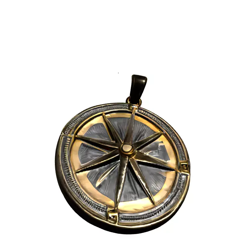 This is a meticulously crafted 3D model of a golden compass rose pendant, designed with exceptional attention to detail. The model features a luxurious polished gold finish, beautifully contrasted with darker, textured recesses that highlight the intricate cardinal directions (North, South, East, West) and the ornate compass points. Its sophisticated design makes it a versatile asset for a wide range of creative projects. Ideal for enhancing game environments, particularly in adventure, RPG, or historical-themed games, it can serve as a key collectible item, a piece of jewelry, or a decorative element. Architectural visualization artists can integrate this elegant pendant into opulent interior scenes, adding a touch of classic charm. Furthermore, its detailed craftsmanship makes it suitable for high-quality product visualization, digital art, and virtual or augmented reality (VR/AR) applications where realism is paramount. The model is built with clean topology and is fully UV unwrapped, ensuring seamless texture application and easy integration into any 3D pipeline. PBR textures are included, providing realistic material properties and reflections for stunning renders. While optimized for high-quality static renderings and close-up shots, it can also be adapted for real-time applications through appropriate level-of-detail (LOD) implementation. Supported file formats include GLB, OBJ, STL, ABC, DAE, FBX, USD, and PLY, ensuring broad compatibility across various 3D software and engines.