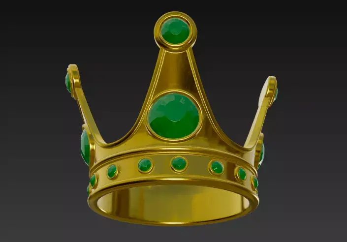 Beautiful high-quality 3D model of a luxurious golden royal crown decorated with large emerald gemstones. Perfect for game assets, jewelry rendering, animation, VR/AR projects, visualizations, and historical or fantasy scenes. Clean topology, fully detailed, and ready to render. Gold material and emerald gems are carefully crafted with realistic reflections and shine. Great for kings, queens, medieval, fantasy, or luxury-themed projects.