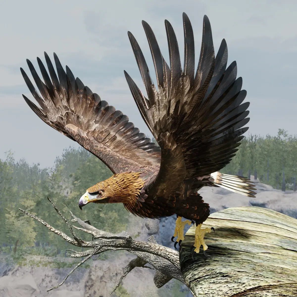 You can also make adjustments, like spreading the wing tip feathers and spreading the tail using morph targets.
