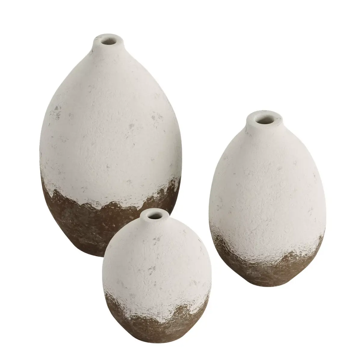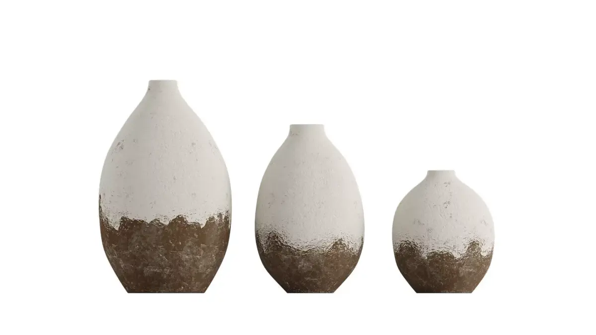 - Golden Earth Vases Clay collection brings a contemporary feel to traditional raw ceramic. With a minimalist yet expressive design, this set of three ceramic vases is not just a decorative item but a work of art. The striking contrast between the pure white upper body and the earthy brown base creates a modern and elegant look