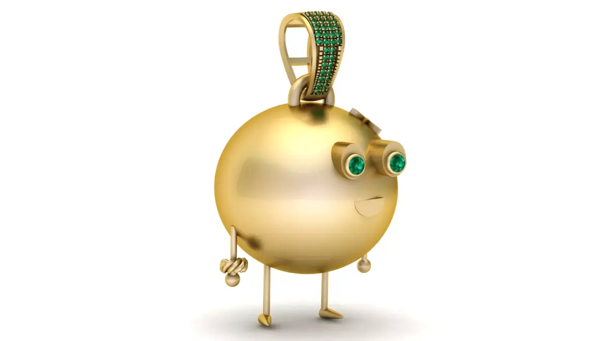 A unique 3D printable model of a Golden Emerald Orb Character designed with a bold round form accented by emerald gemstone details This artistic piece blends fantasy and elegance making it perfect for jewelers designers collectors and 3D printing enthusiasts Optimized for printing in gold silver or resin it can be used as a pendant charm figurine or decorative jewelry accessory