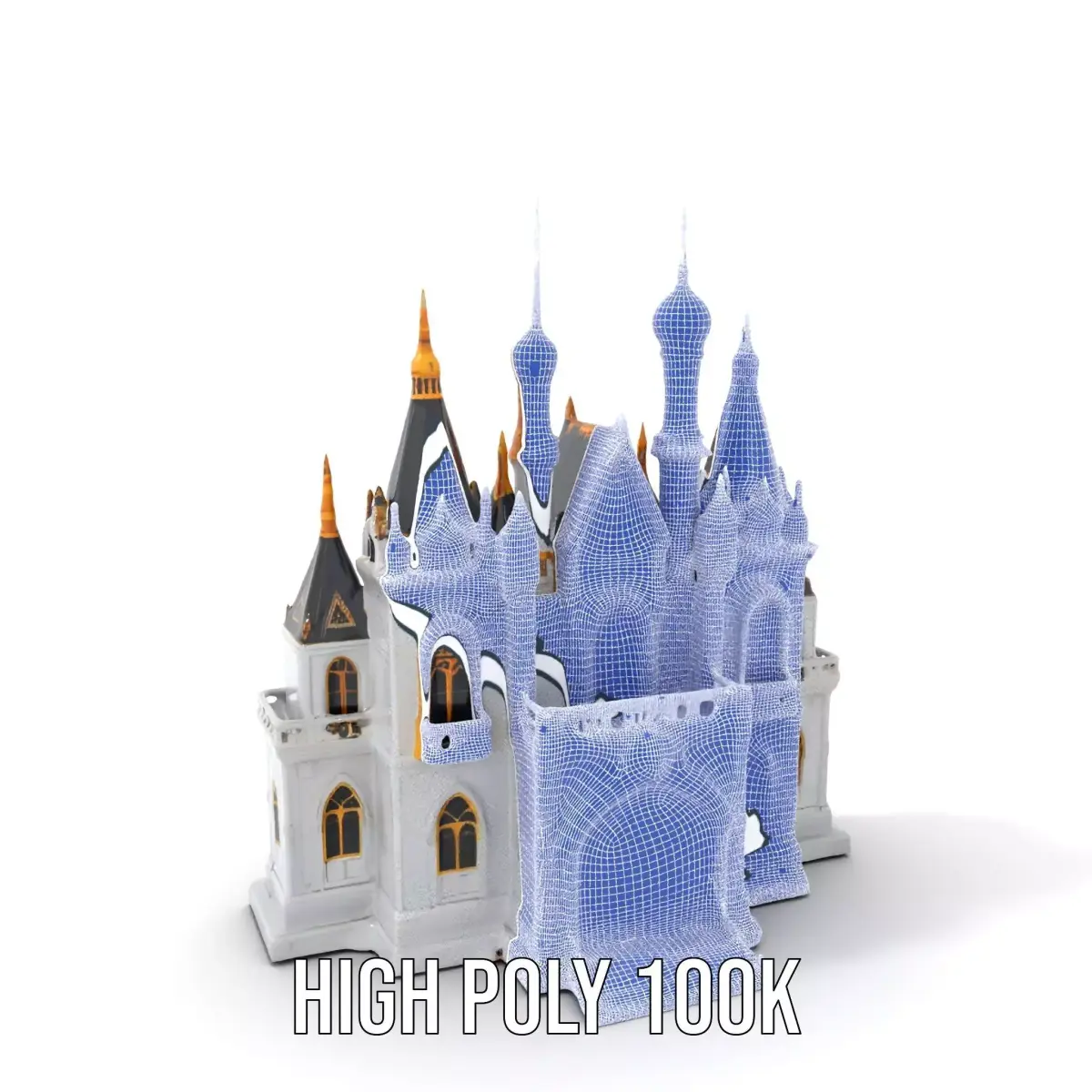 This Golden Enchanted Castle model pack captures the elegance of a fairy-tale castle with its intricate gold detailing and regal architecture. Ideal for fantasy worlds, animations, and games, this model offers three levels of detail for flexible use.