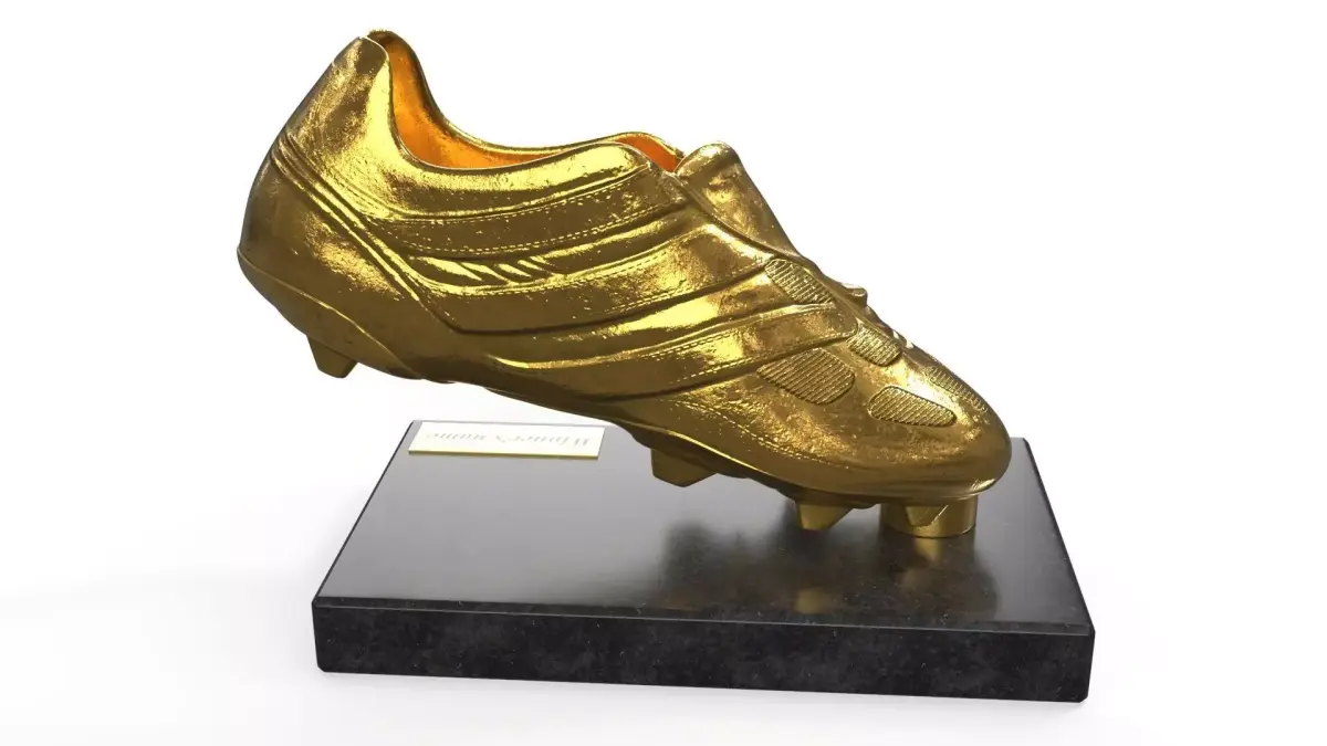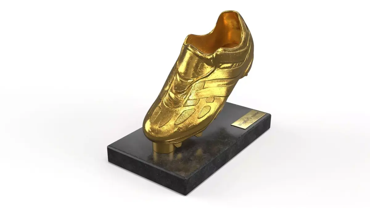 This model represents a stylized award shaped like a football cleat, made of metal, designed to honor achievements in soccer. The cleat form symbolizes athleticism, performance, and competitive spirit in the sport. It is used in sports events, particularly football tournaments, as a symbolic and memorable prize.