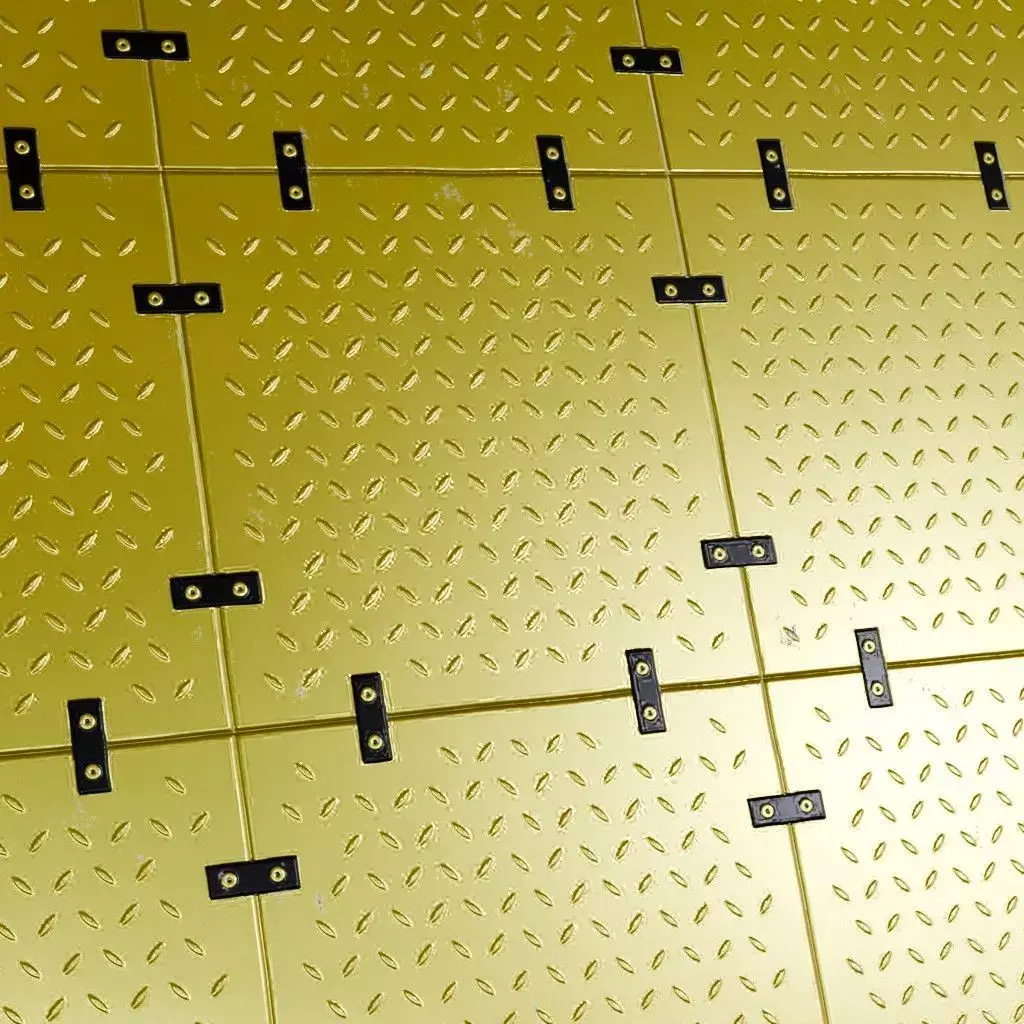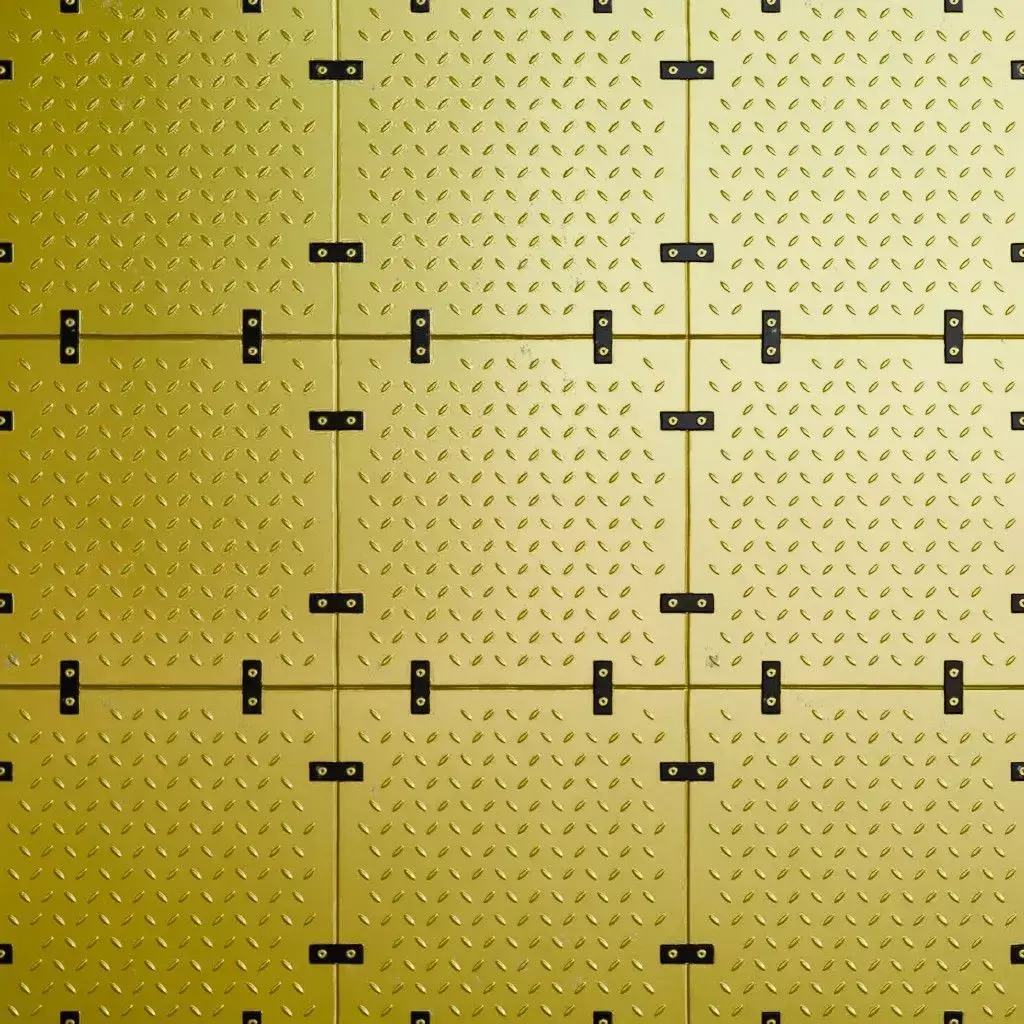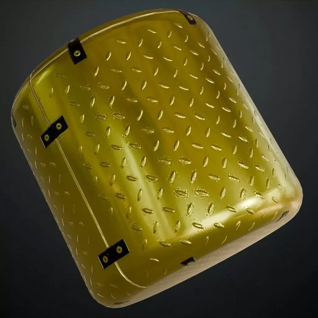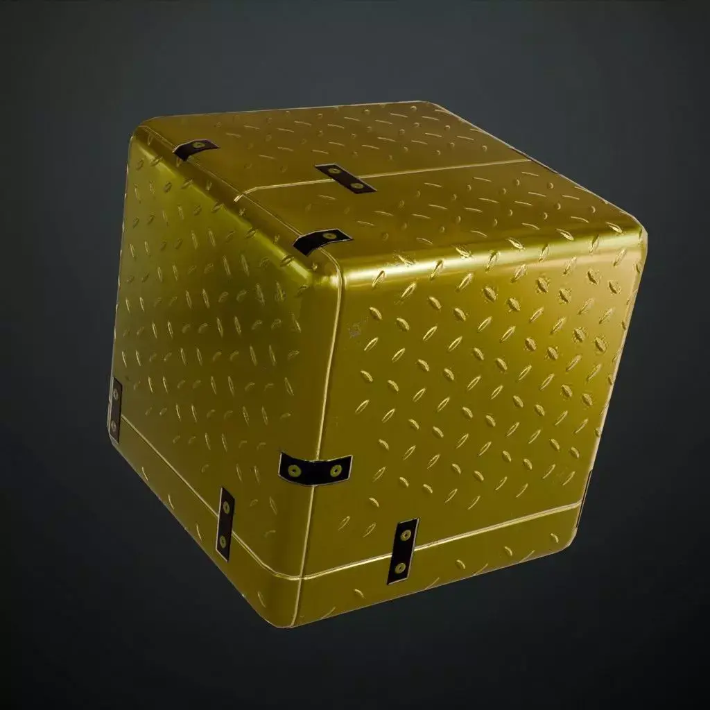 This is a high-quality PBR Texture Pack of a Golden Full Metal Plate.All essential Maps, including BaseColor, Normal, Roughness, Height, and Metallic, are provided to deliver a highly realistic industrial finish. This material features a premium golden surface divided into large square panels, each reinforced with a diamond tread safety pattern and secured by industrial brackets with visible bolts. It is an ideal choice for luxury sci-fi interiors, high-end industrial flooring, or decorative armored plating.